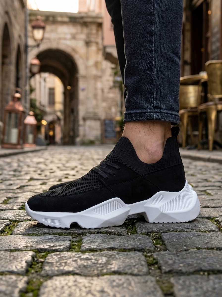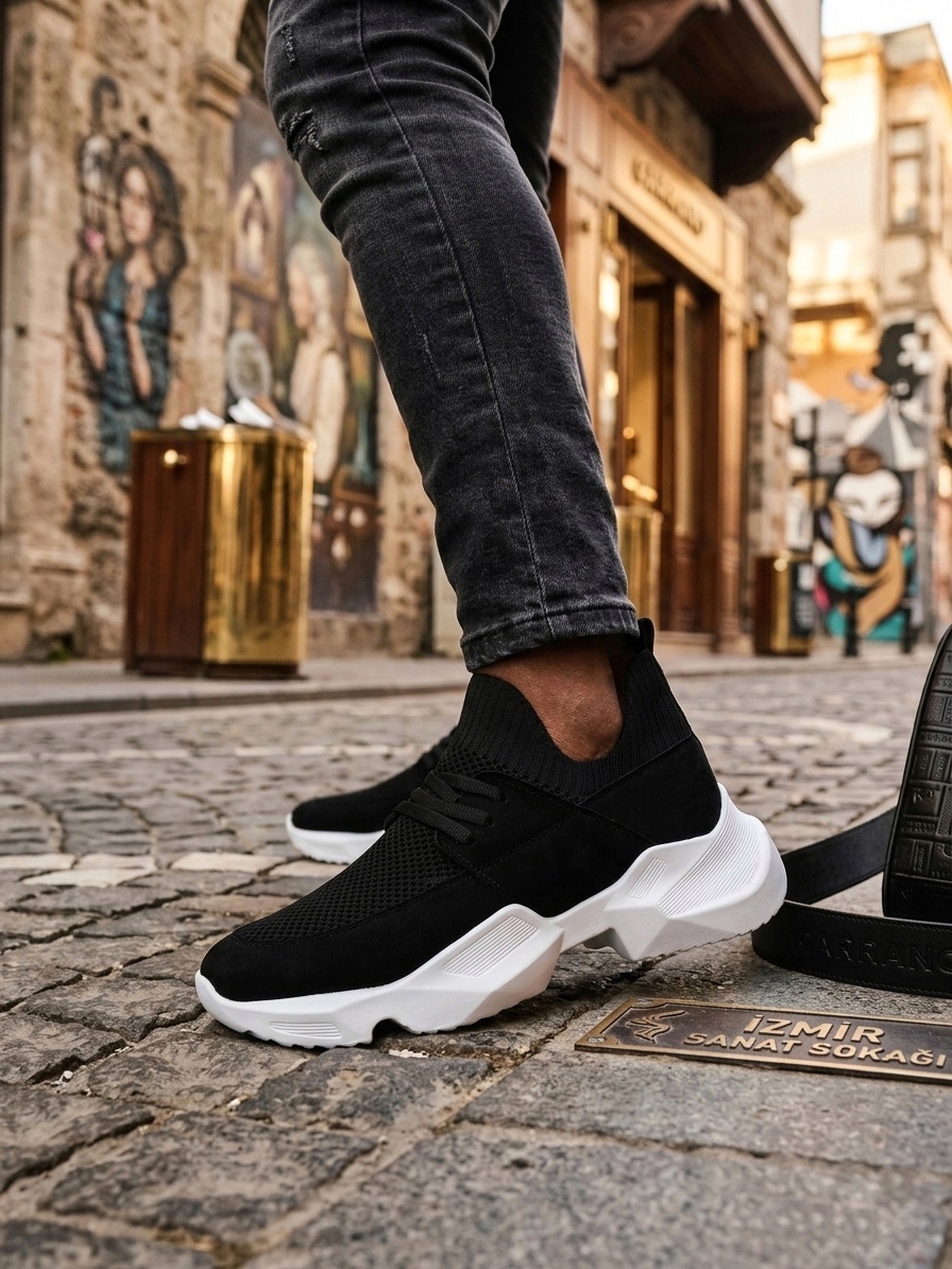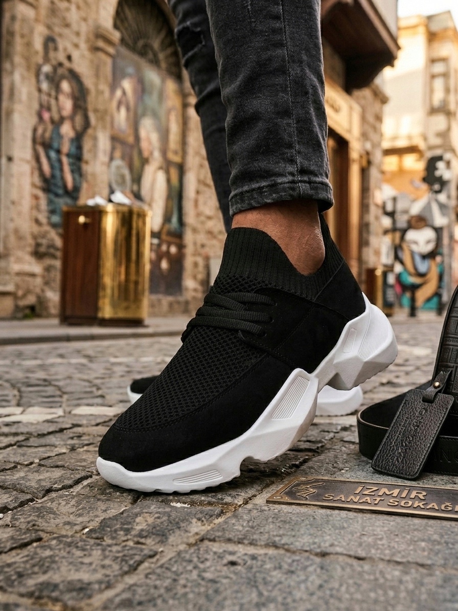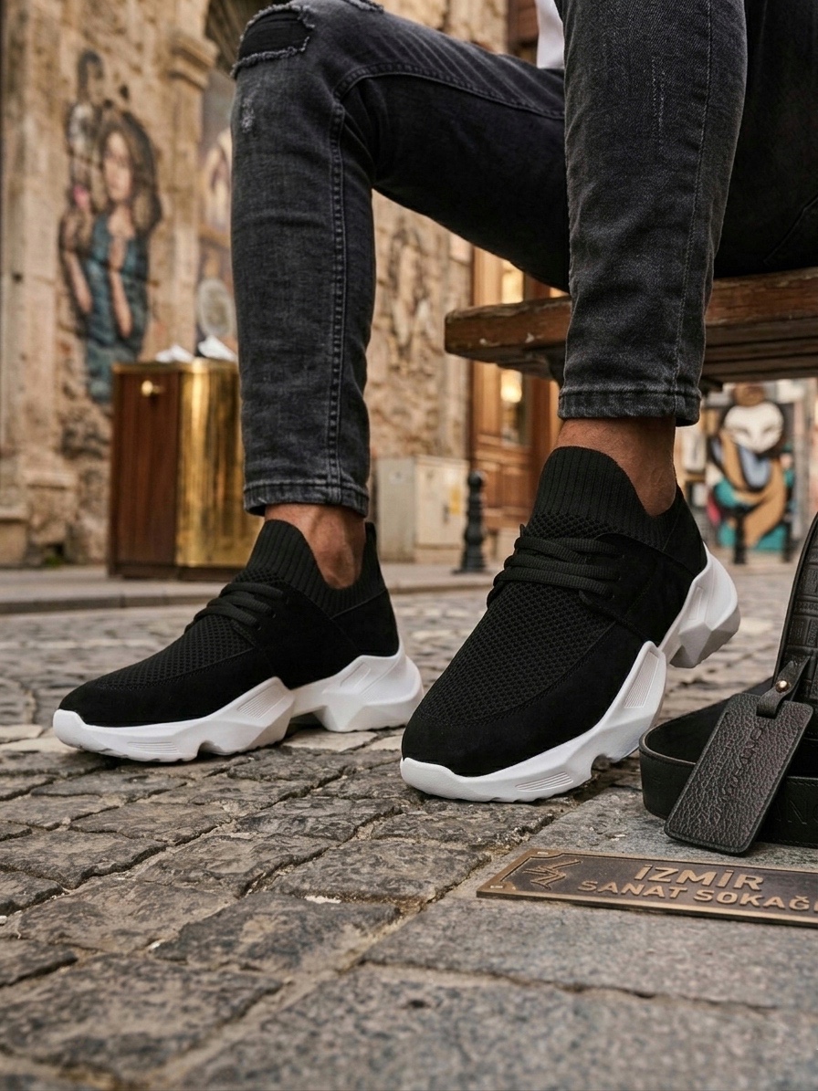 • 403 Yumuşak Triko Dokulu Yüksek Siyah Taban Spor Ayakkabı