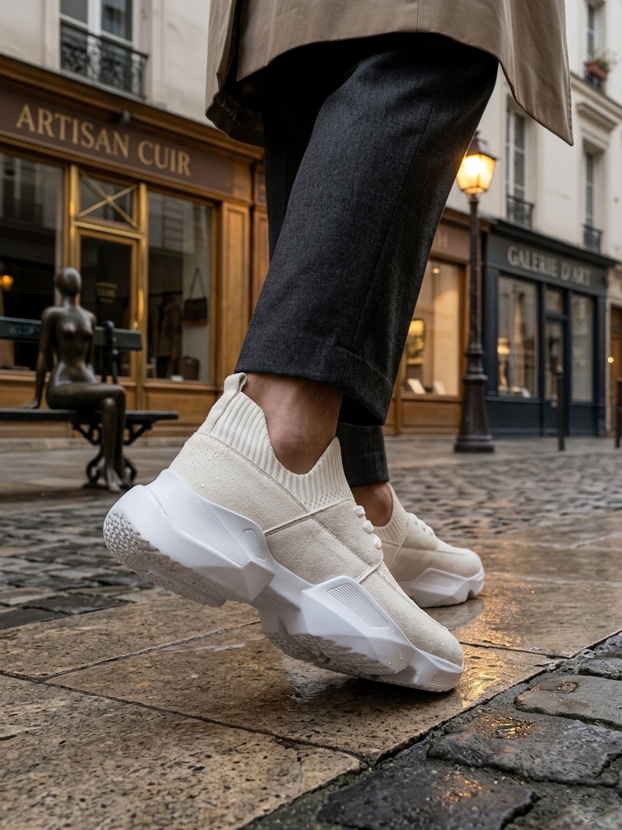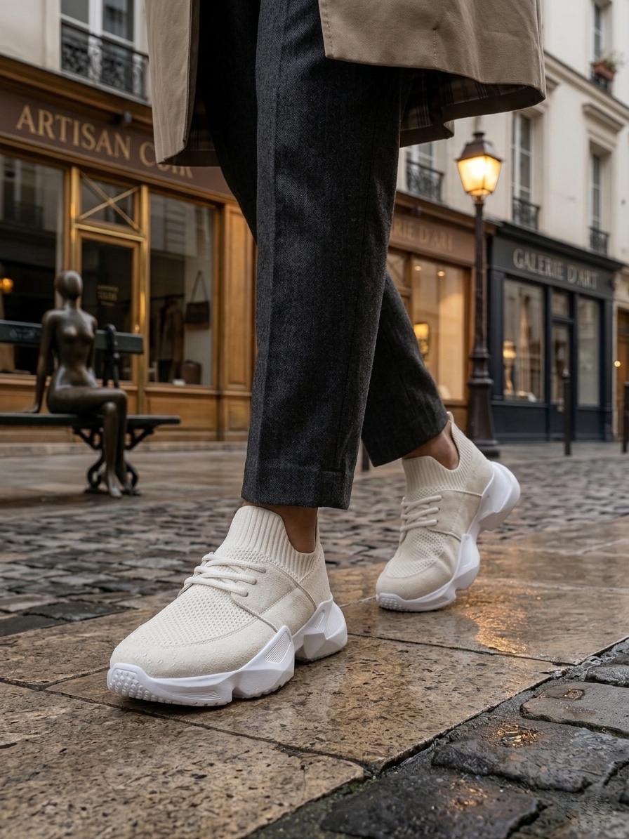 403 Yumuşak Triko Dokulu Yüksek Taban Beyaz Spor Ayakkabı