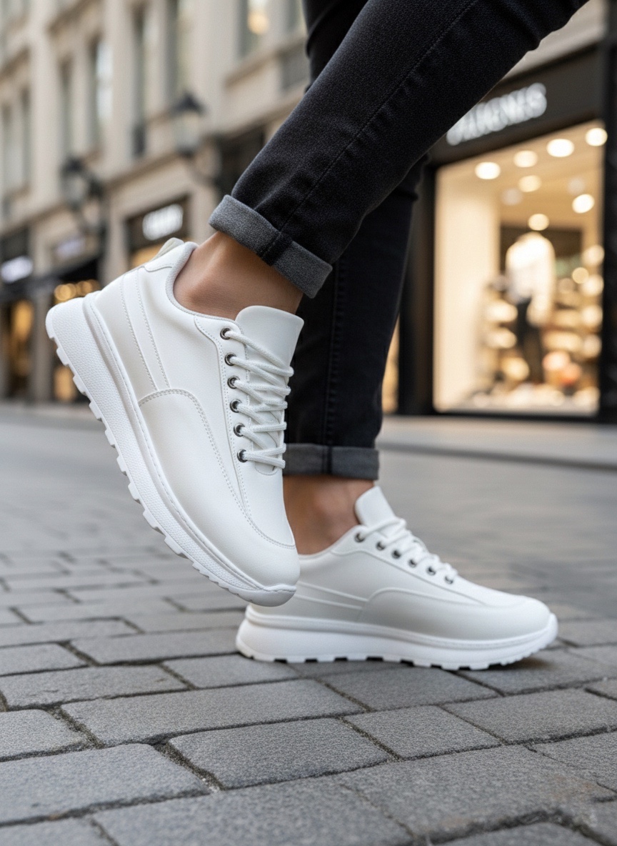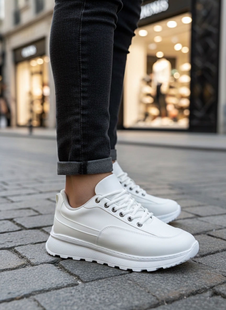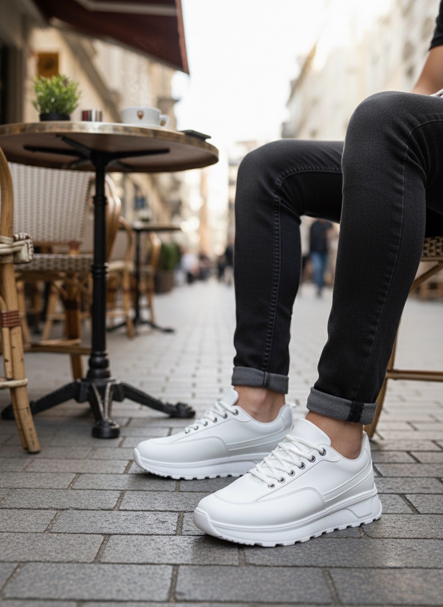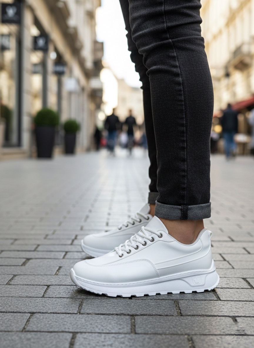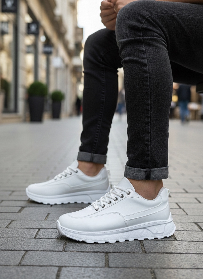 • LVO0246 Beyaz Bağcıklı Yüksek Taban Günlük Erkek Ayakkabı