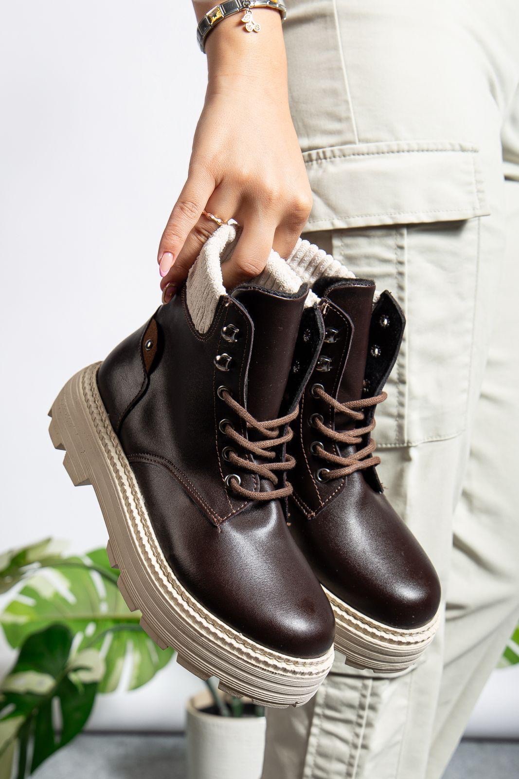 Cilt Kahve Bağcıklı Yüksek Taban Kadın Bot