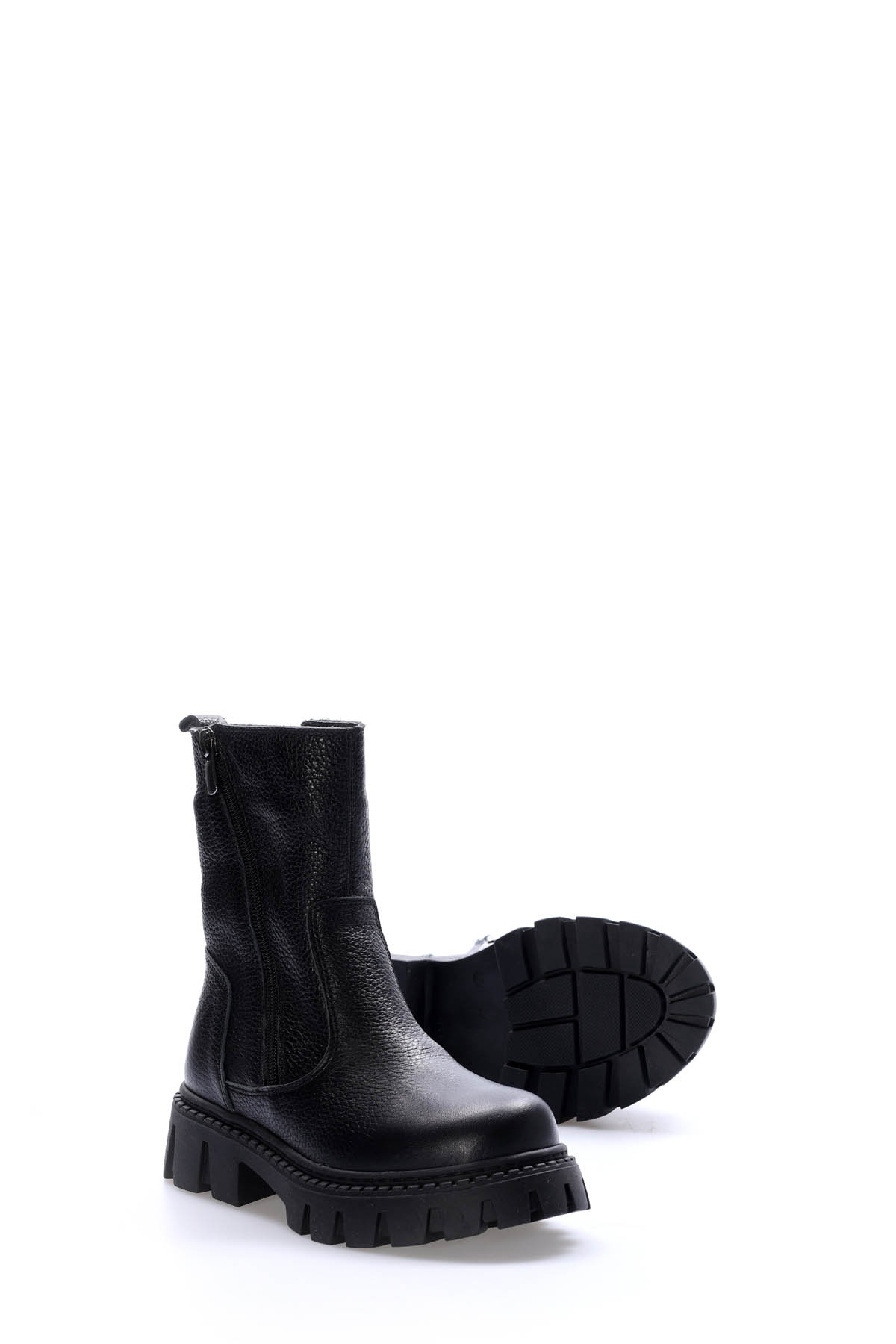 Laviovil İçi Kürklü Dışı Hakiki Deri Siyah Unisex Çocuk Kalın Taban Bot AH08612116116447