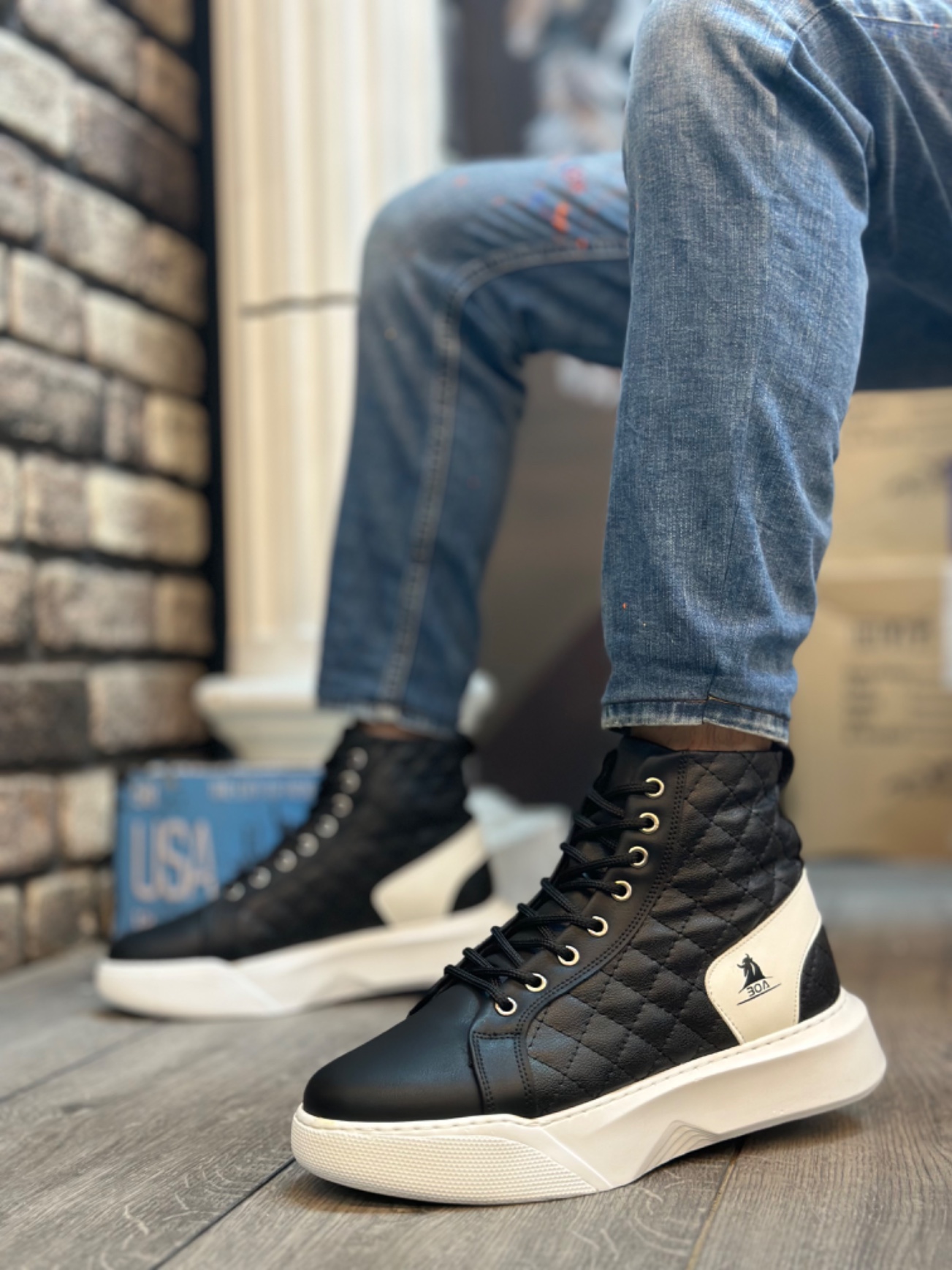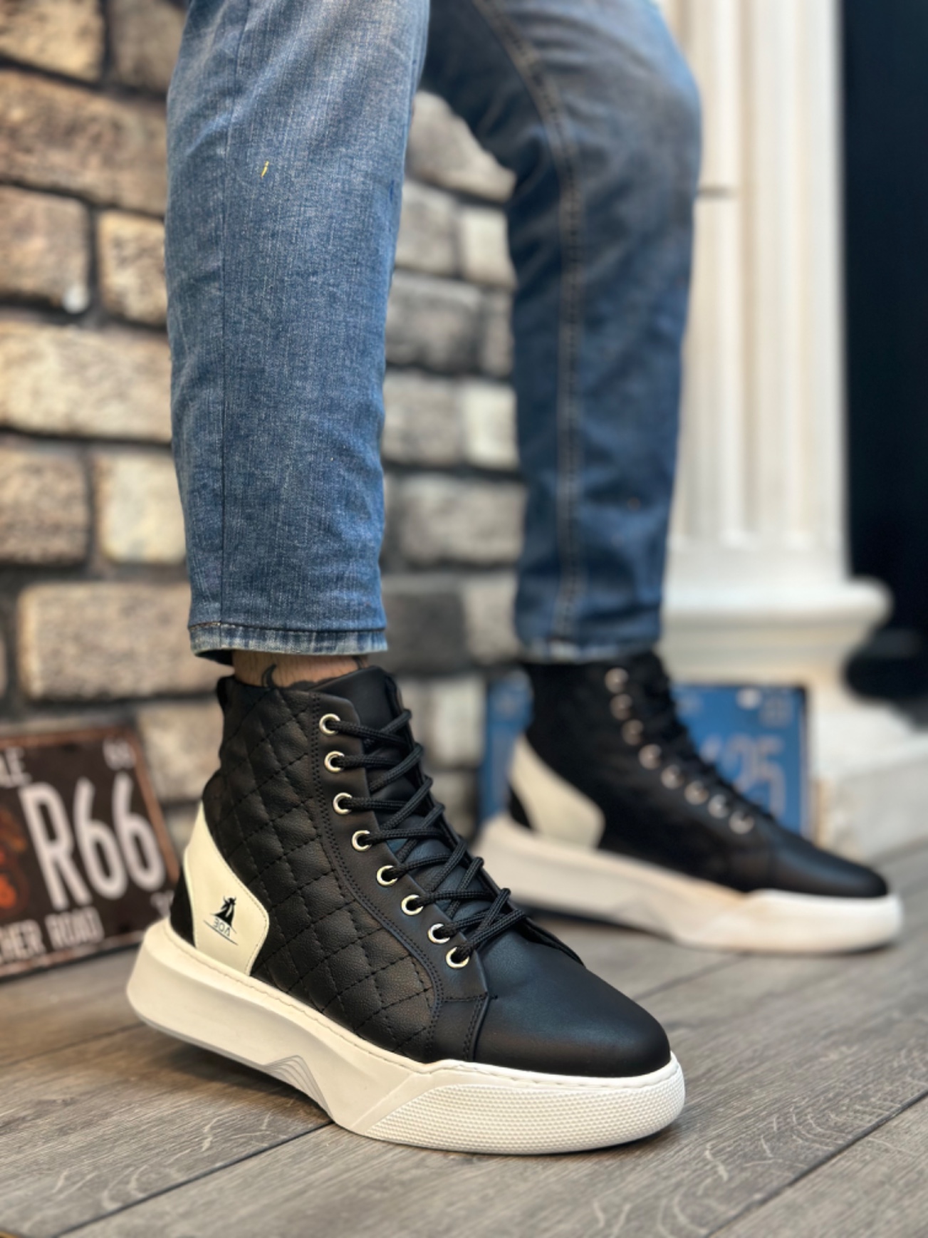 Tarz Erkek Ayakkabı Erkek Bot Laviovil Siyah Beyaz Kapitone Bağcıklı Kalın Poly Taban Erkek Spor Bot LVO202210EK309