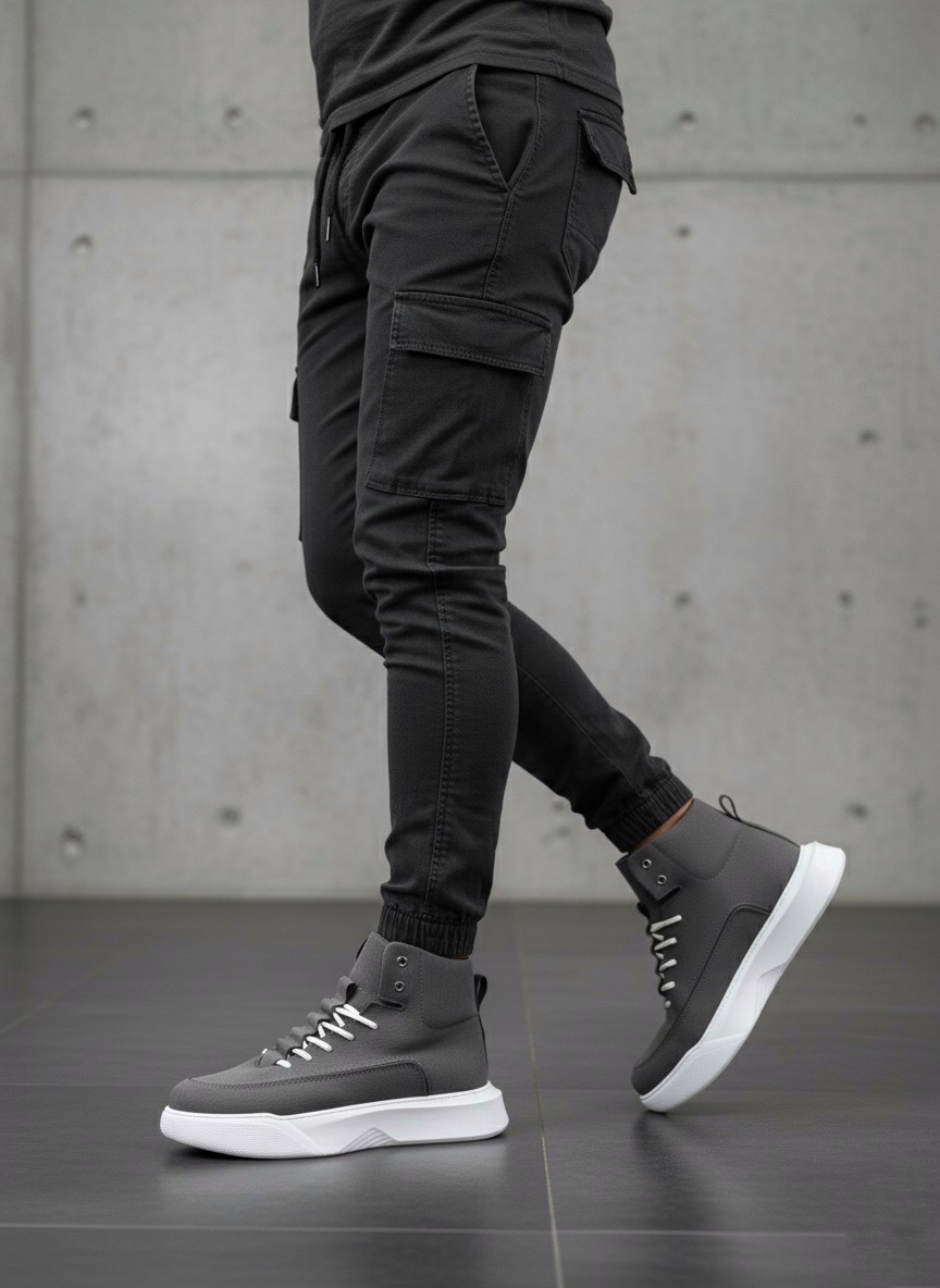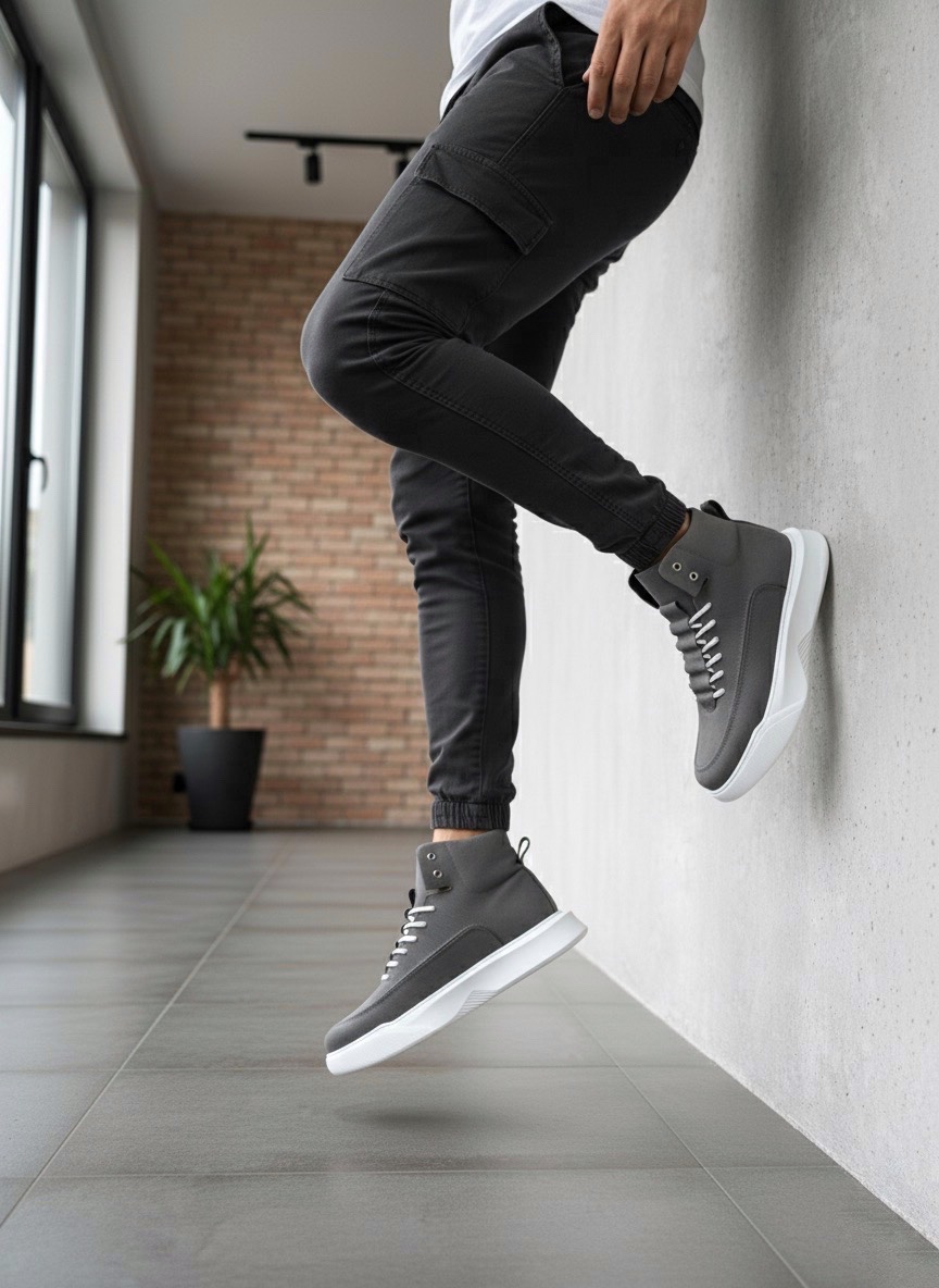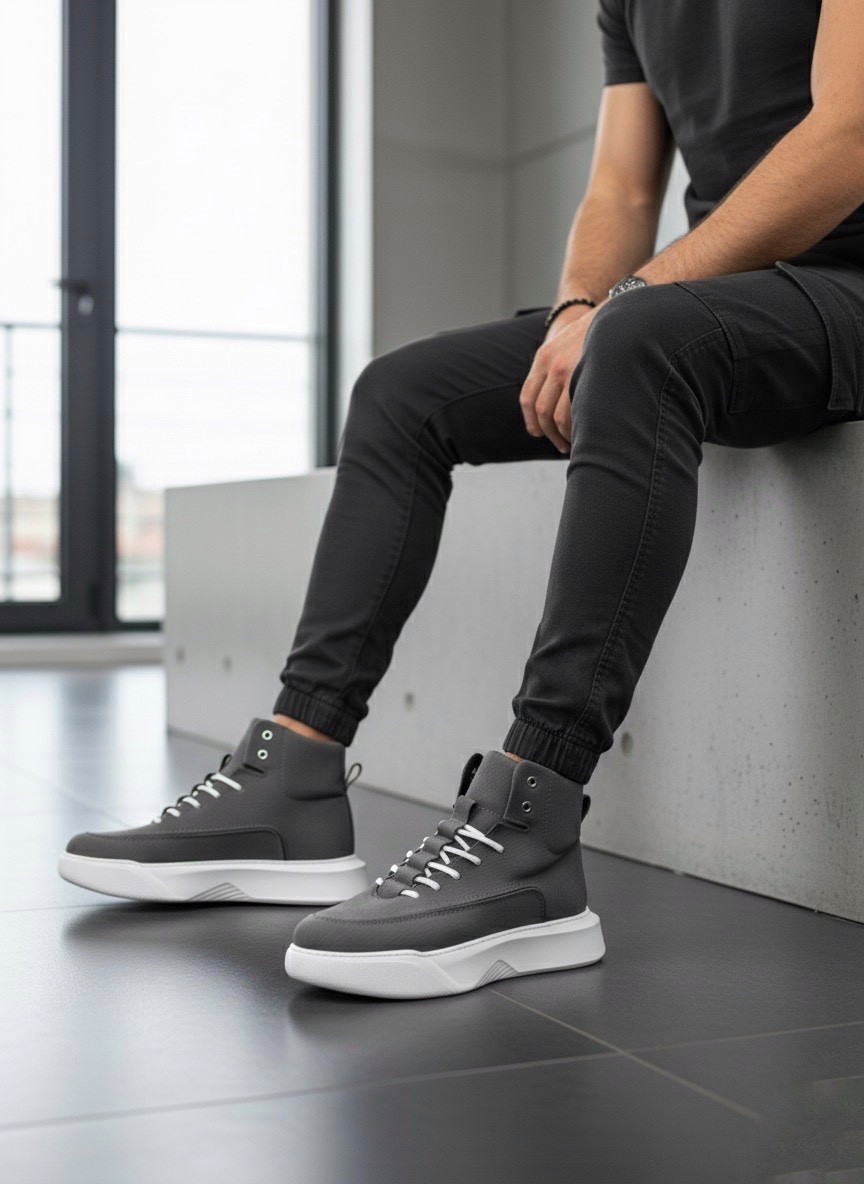 Tarz Erkek Ayakkabı Erkek Bot LVO0321 Gizli Bağcıklı Erkek Füme Beyaz Taban Spor Bot