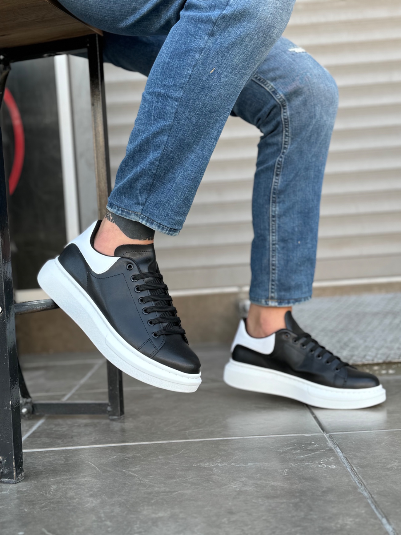 LVO0547 LVO Kalın Yüksek Taban Siyah Beyaz Parça Detay Bağcıklı Spor Erkek Ayakkabı