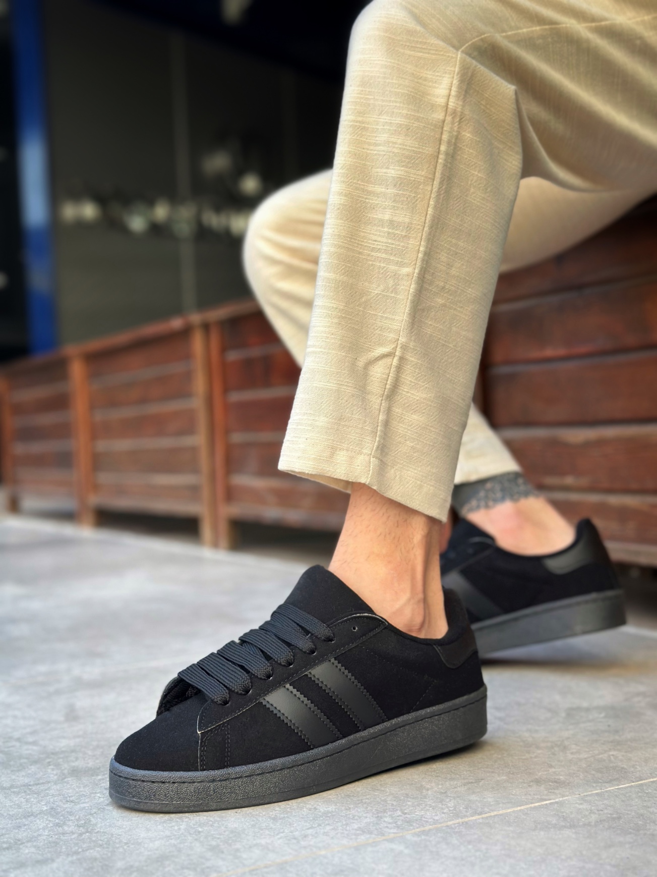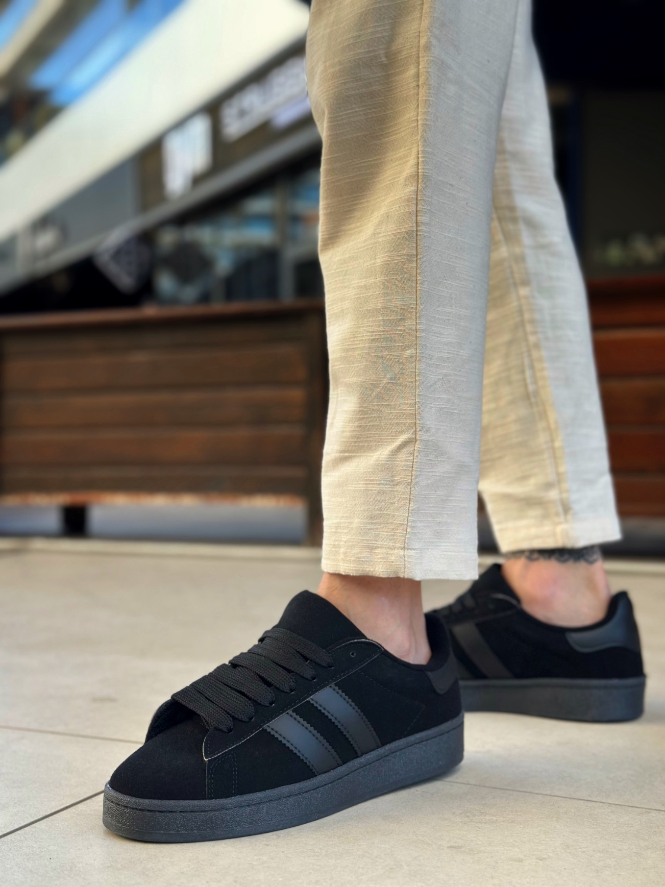 Tarz Erkek Ayakkabı Yüksek Taban LVO0235 LVO İki Çizgili Siyah Taban Erkek Günlük Ayakkabı