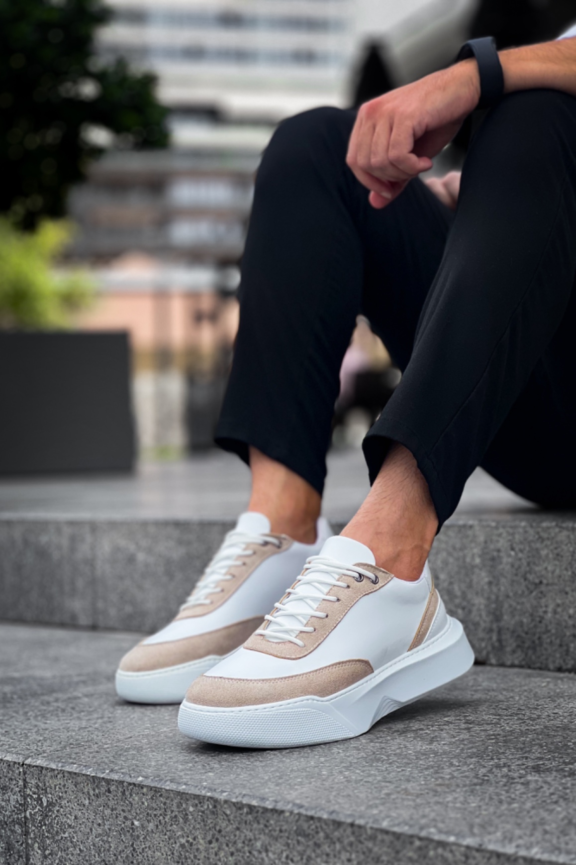 LVO0354 Günlük Bağcıklı Erkek Krem Parçalı Beyaz Yüksek Taban Spor Ayakkabı