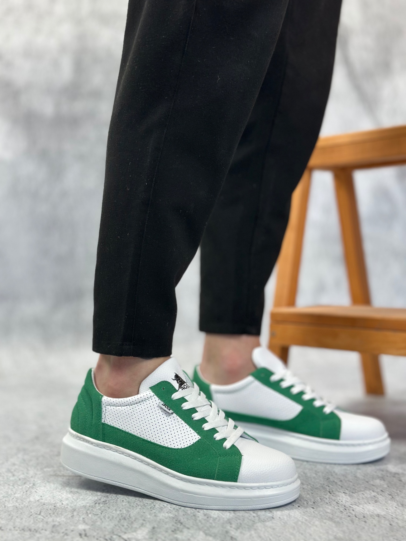 LVO0423 LVO Kalın Yüksek Taban Beyaz Yeşil Bağcıklı Spor Erkek Ayakkabı