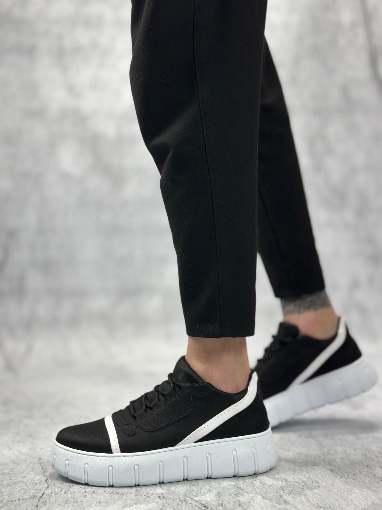 LVO0666 LVO Siyah Beyaz Yüksek Taban Erkek Günlük Ayakkabı
