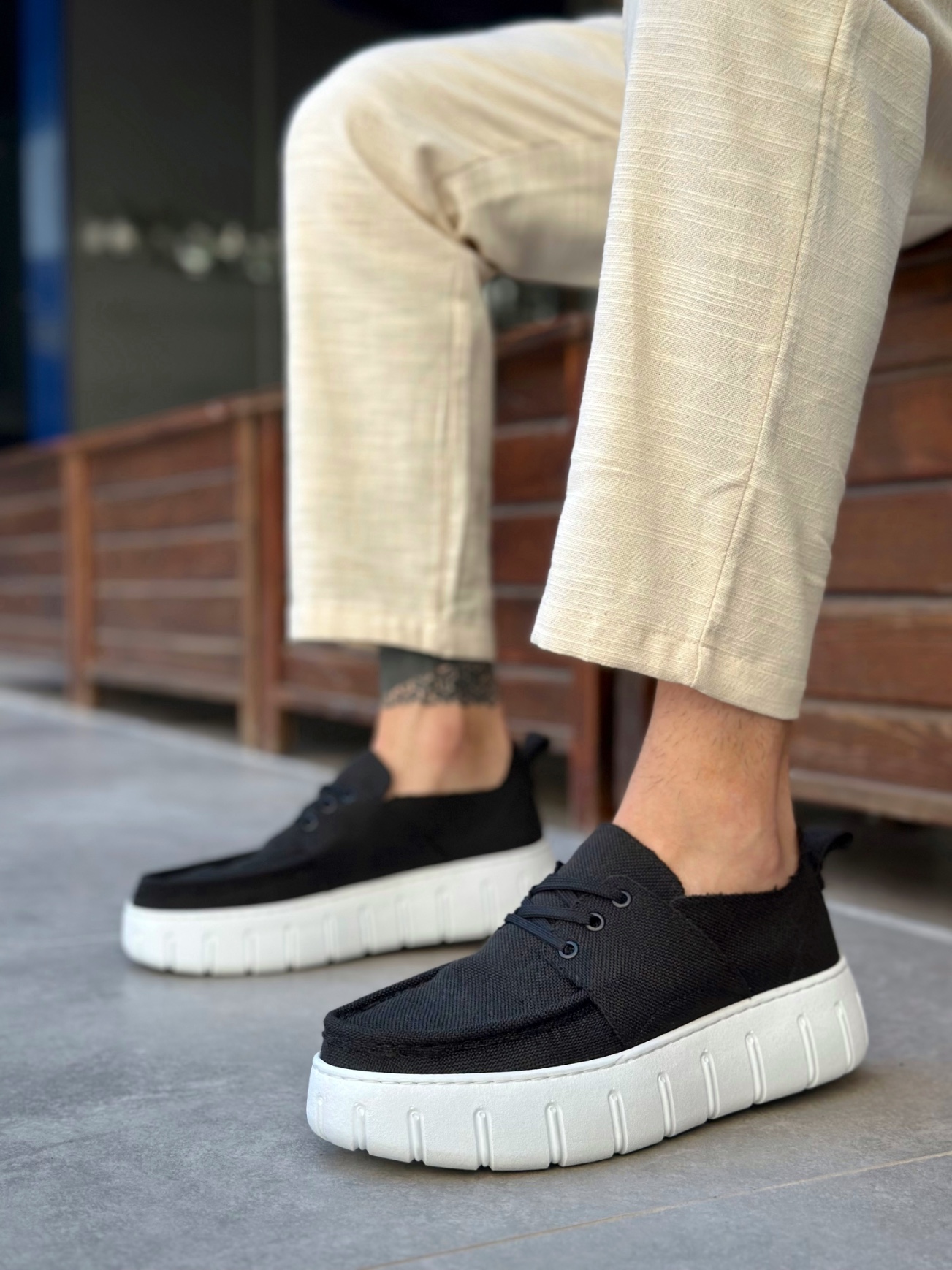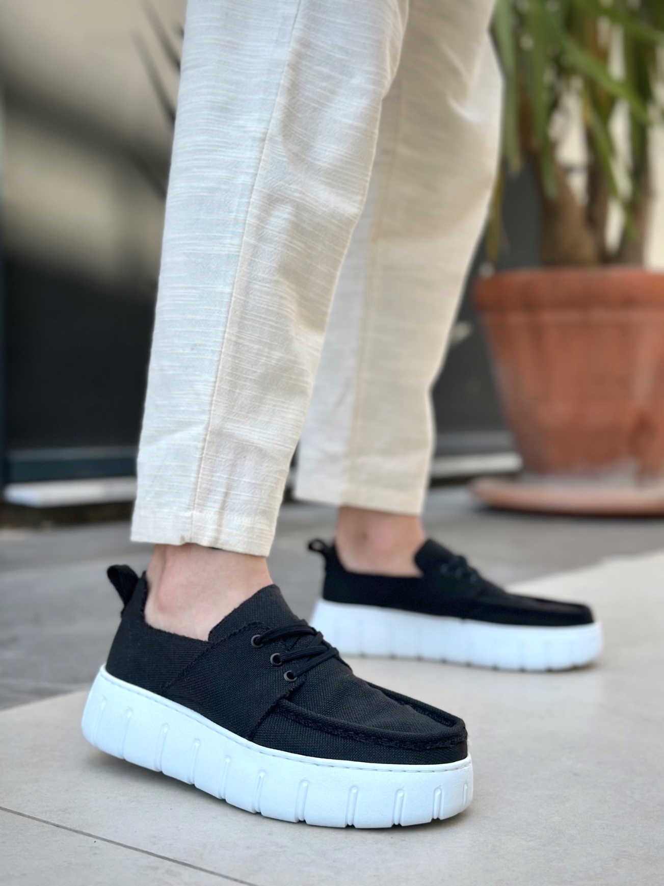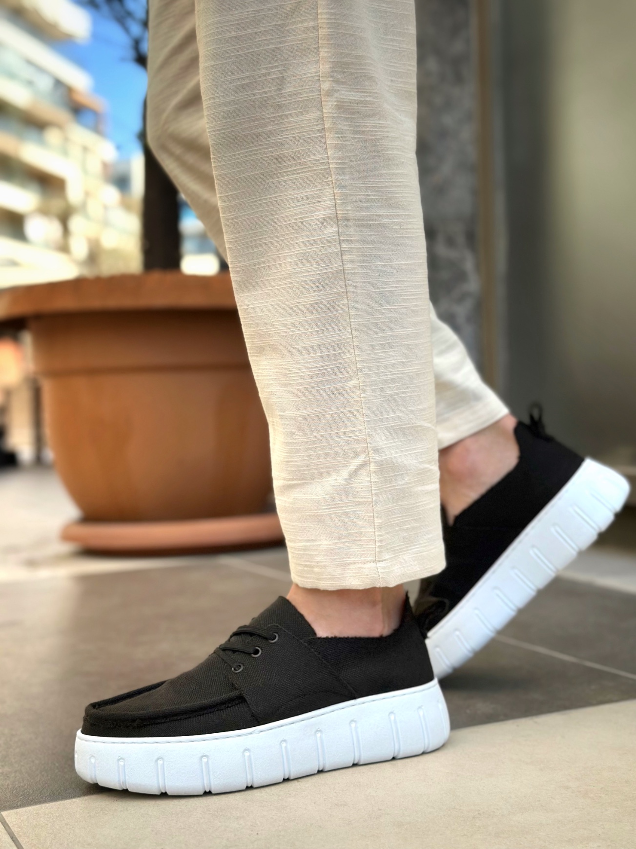 LVO0676 LVO Siyah Keten Yüksek Beyaz Taban Erkek Yazlık Ayakkabı