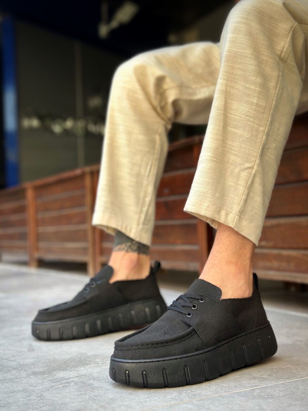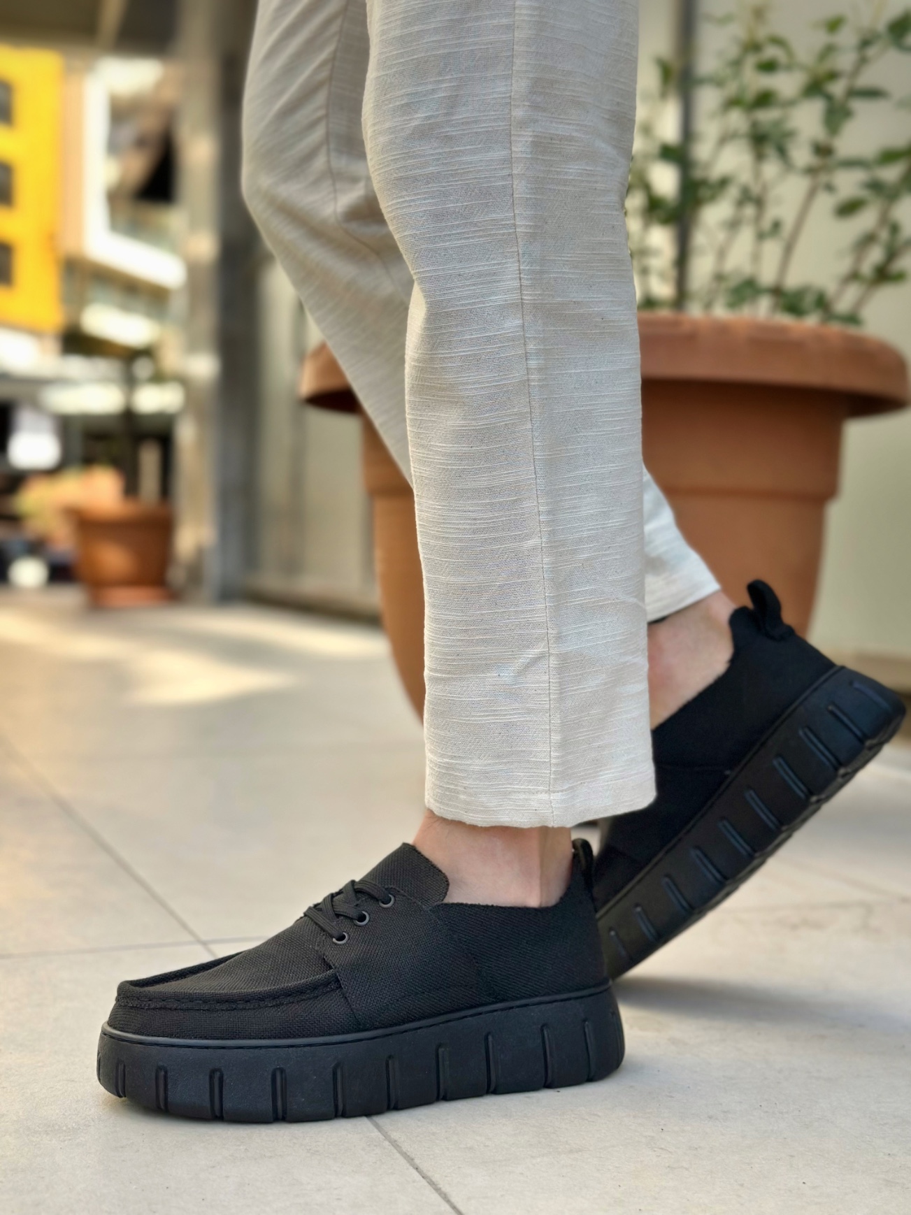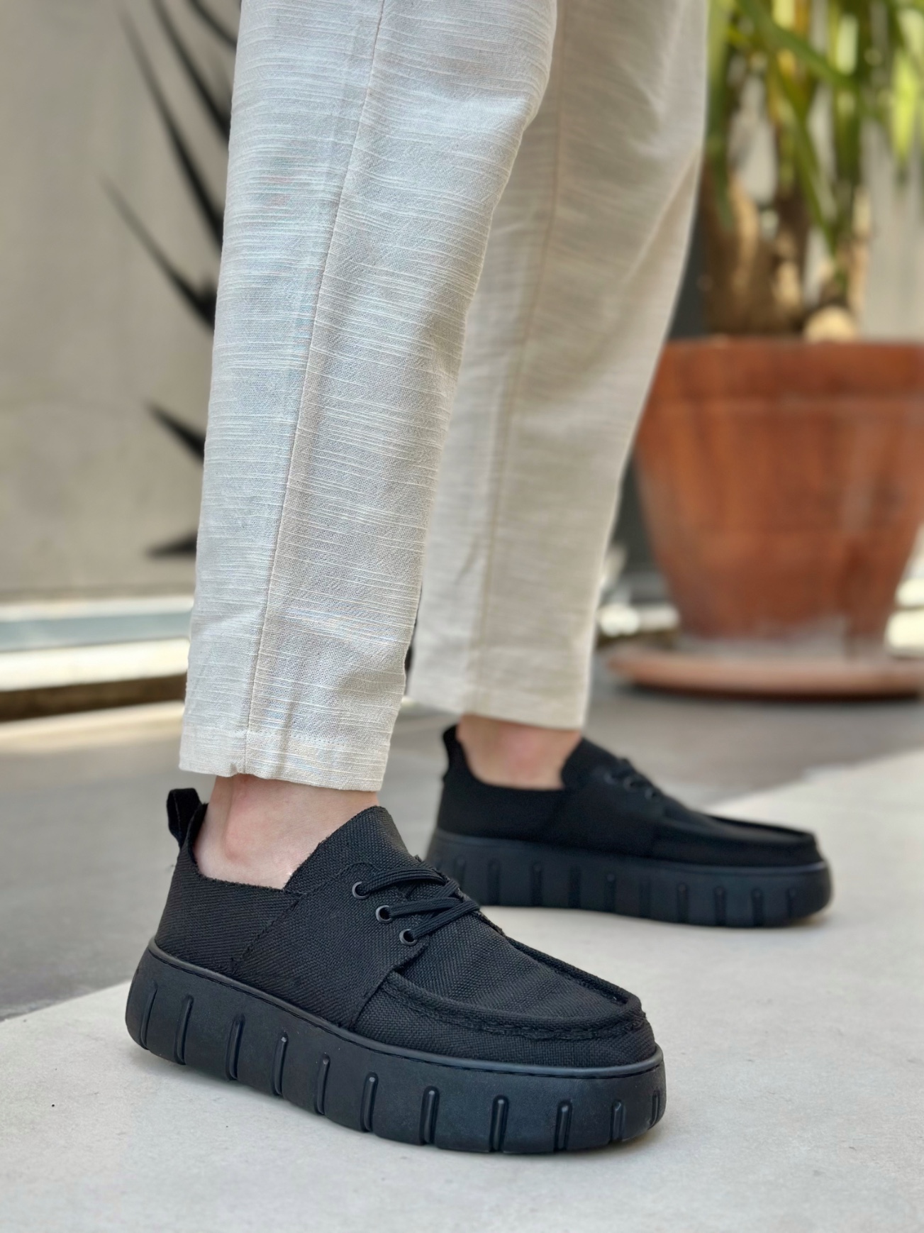 • LVO0676 LVO Siyah Keten Yüksek Taban Erkek Yazlık Ayakkabı