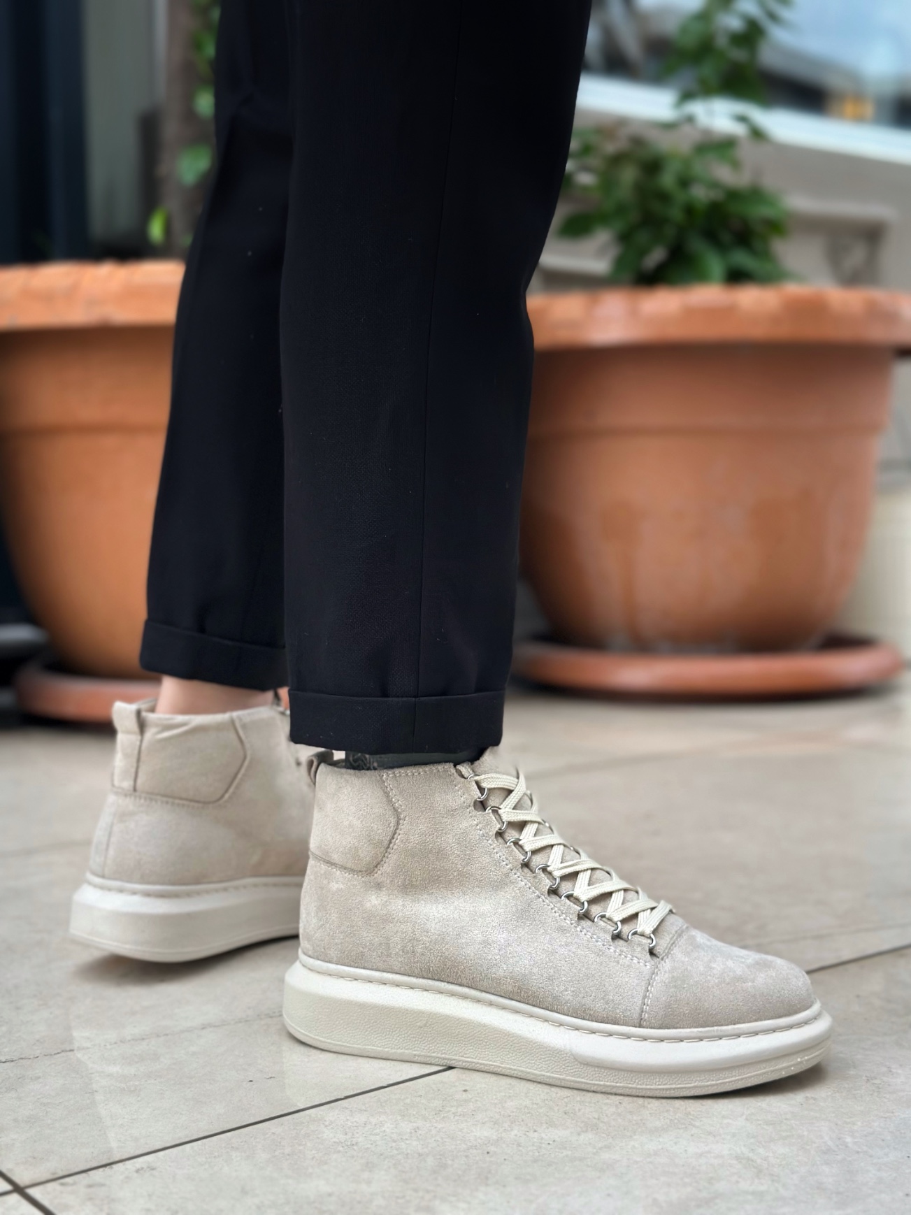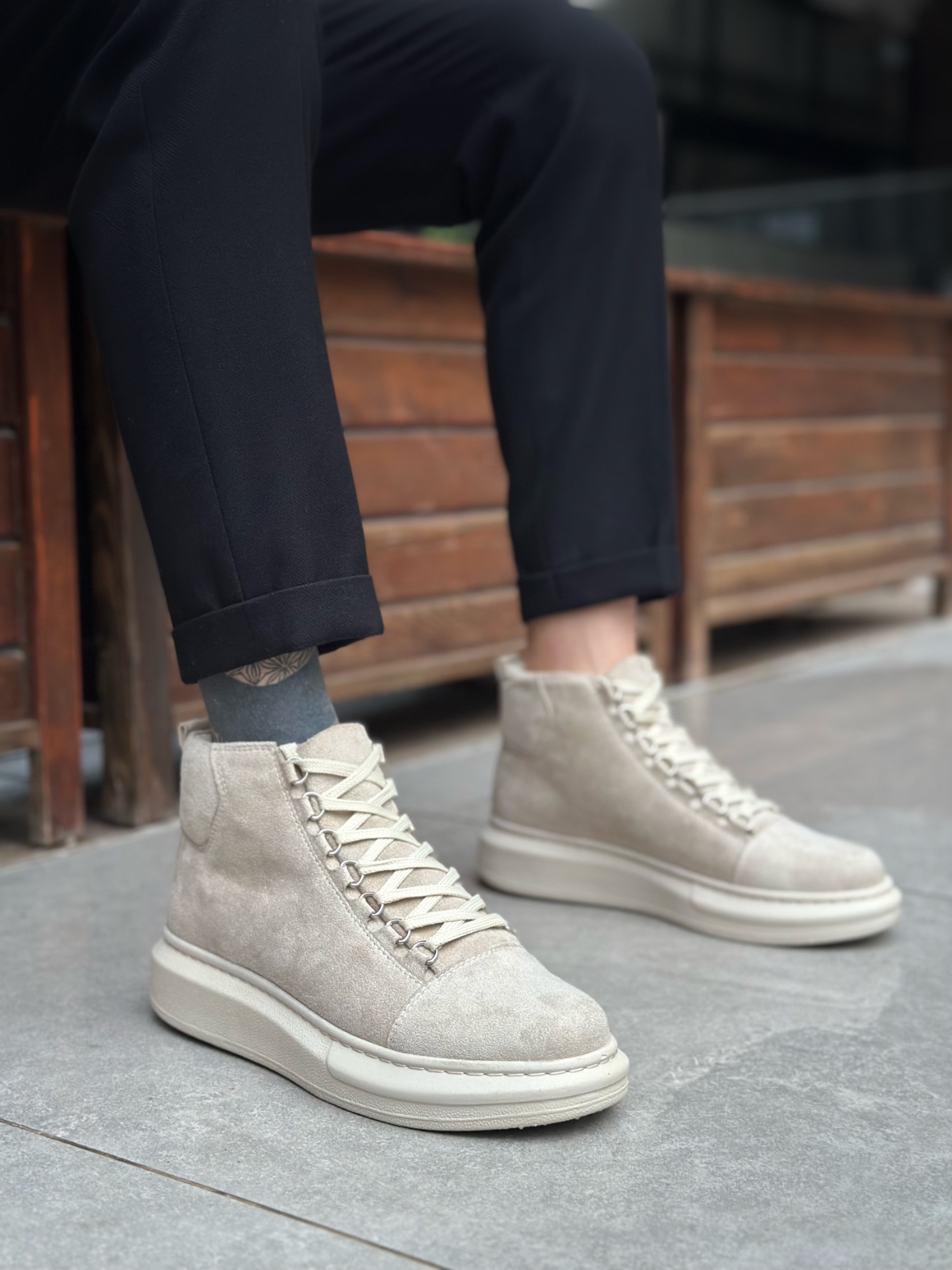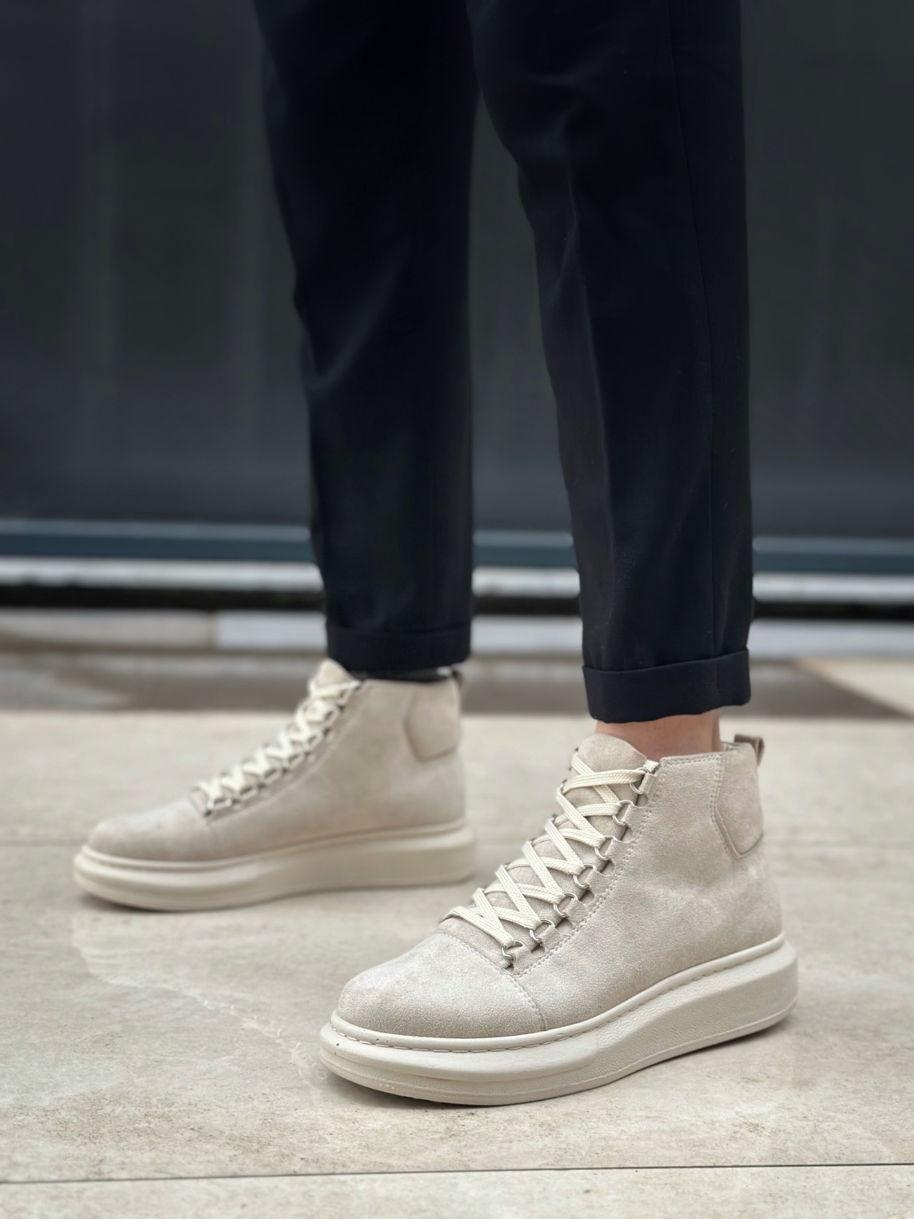 • LVO0713 Bağcıklı Süet Bej Yüksek Taban Erkek Tarz Spor Bot