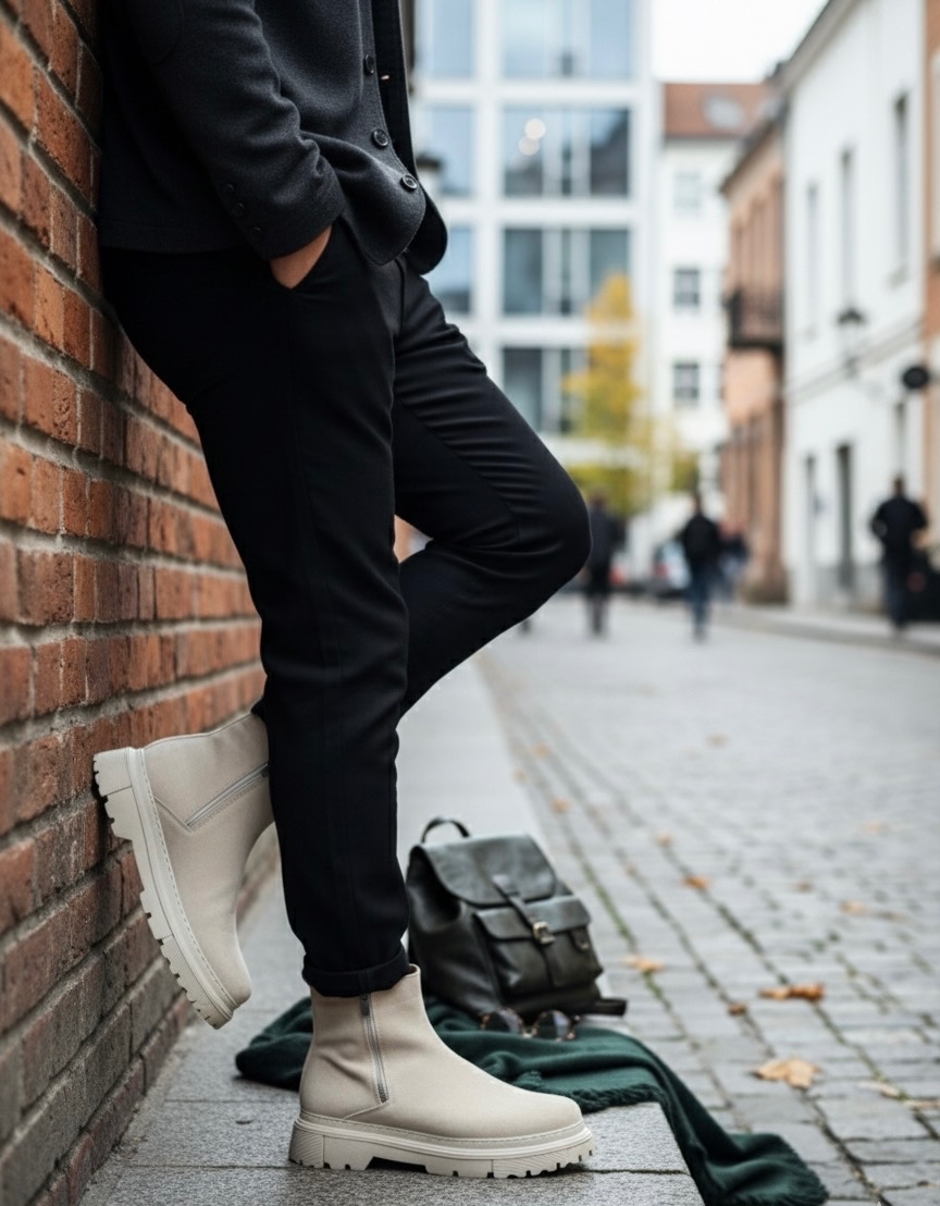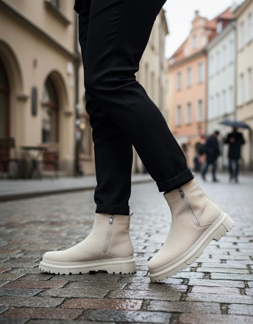 • LVO0777 Süet Bej Çift Fermuarlı Erkek Yarım Bilek Bot