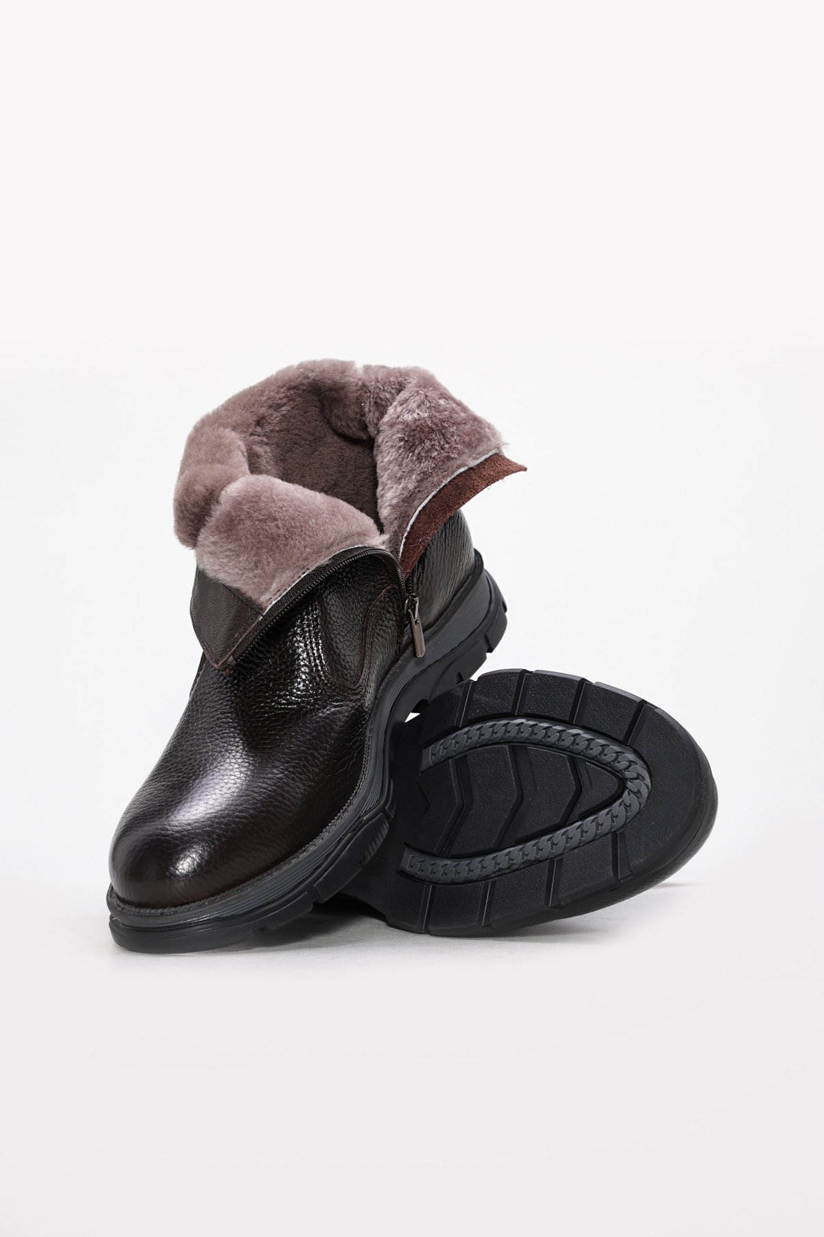 • Laviovil İçi Kürklü Dışı Hakiki Deri Kahve Fermuarlı Erkek Klasik Bot AH082491113185180