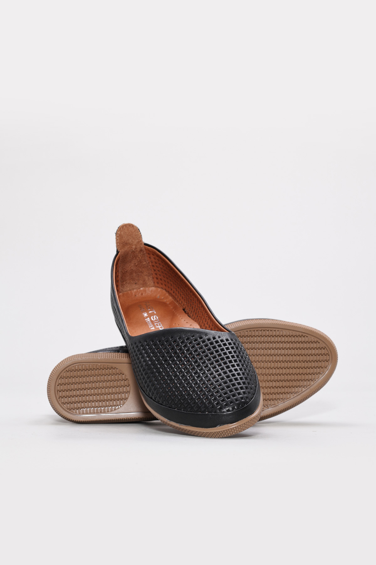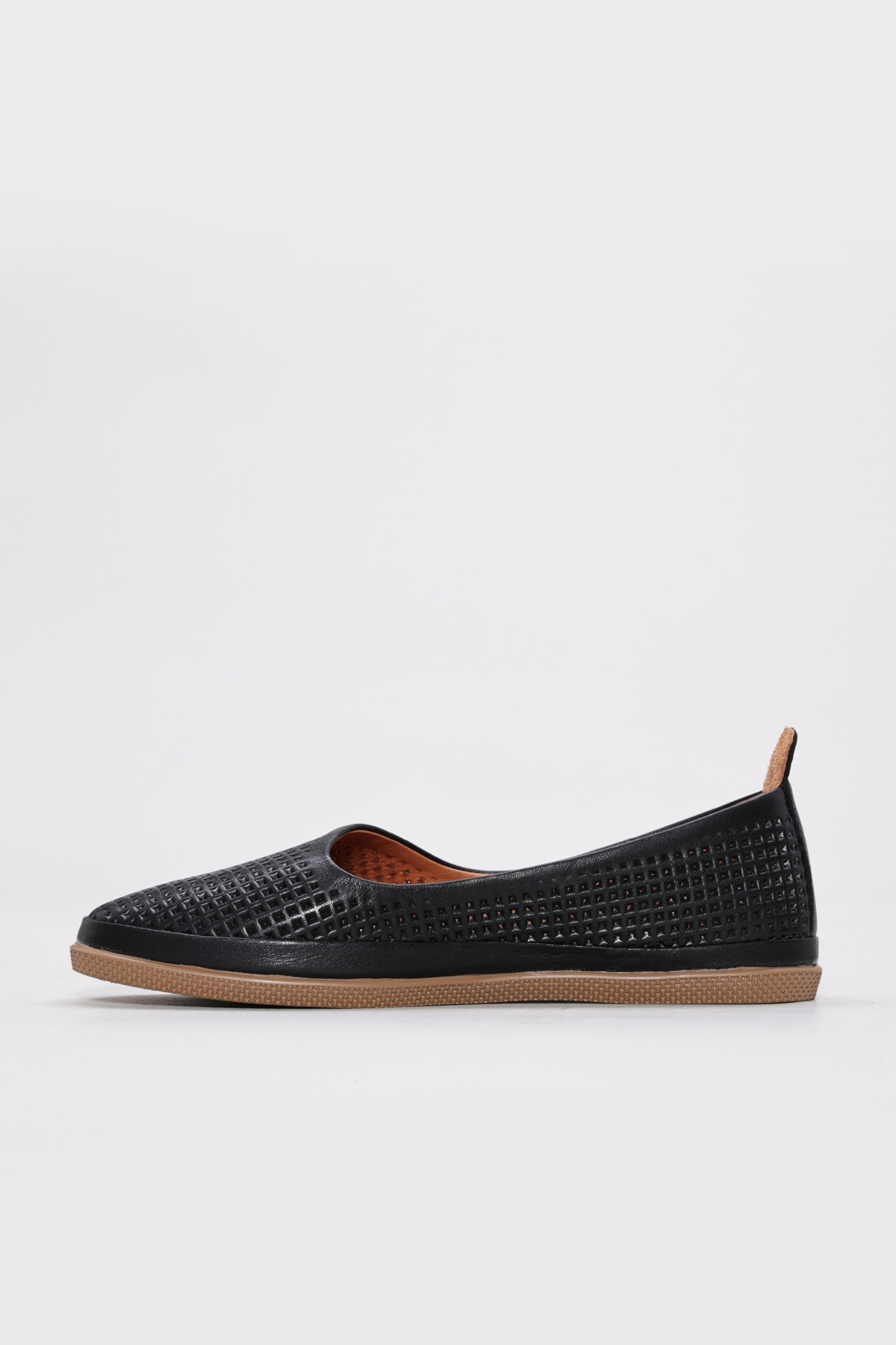 Laviovil İçi Dışı Hakiki Deri Siyah Tarz Kadın Babet Ayakkabı AH084192612208