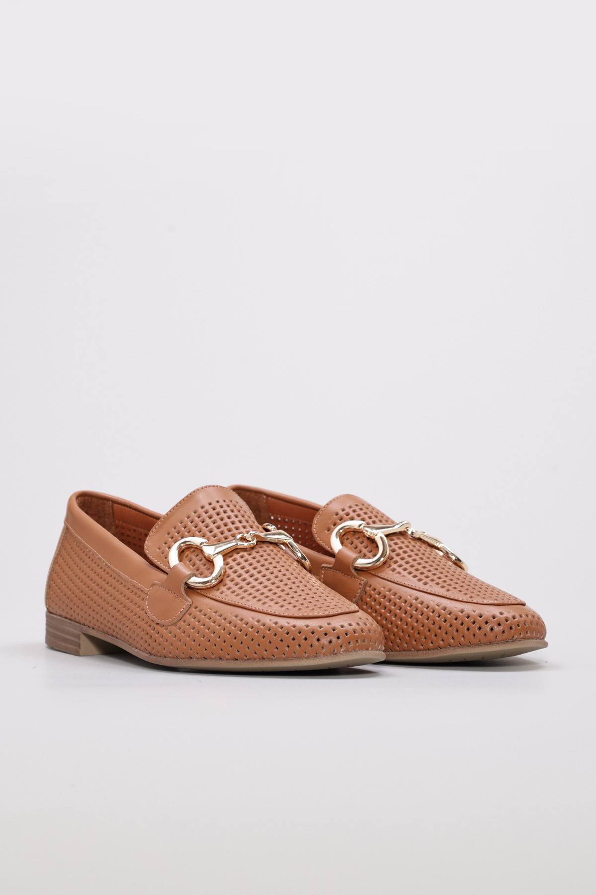 Babet Ayakkabı Laviovil İçi Dışı Hakiki Deri Taba Tokalı Kadın Babet Ayakkabı AH0865726160002116