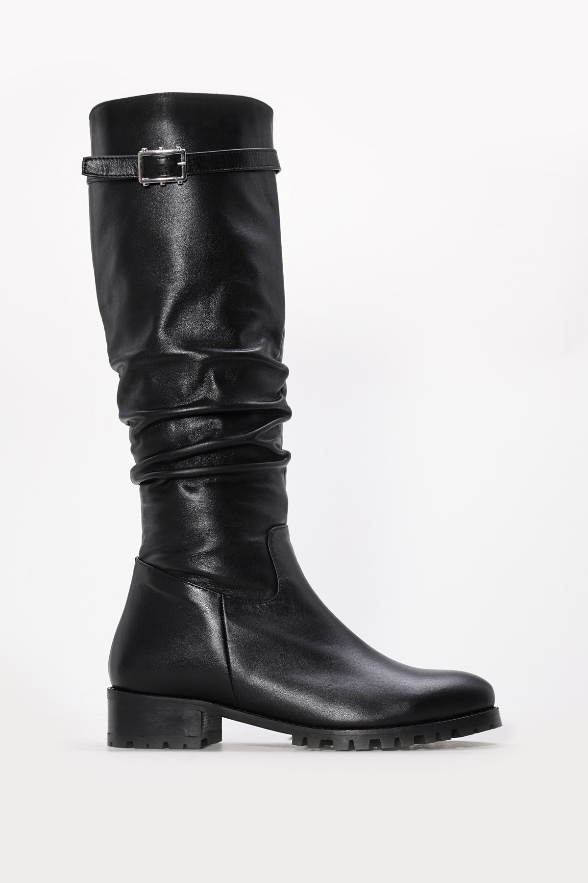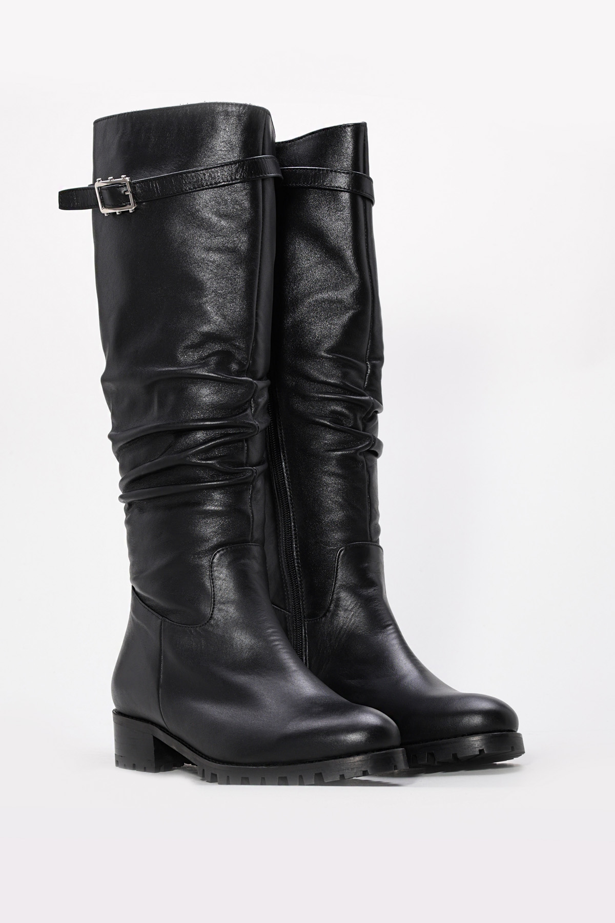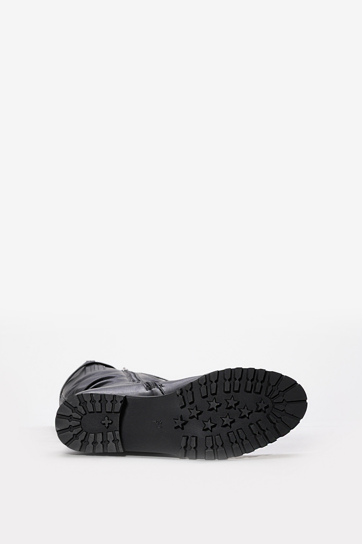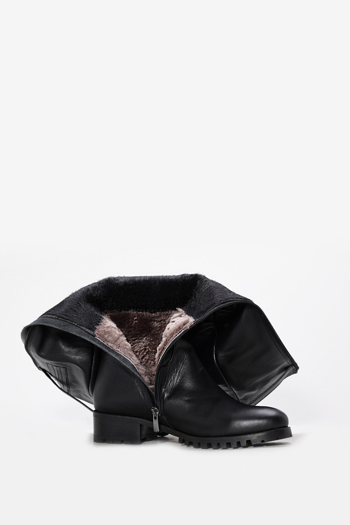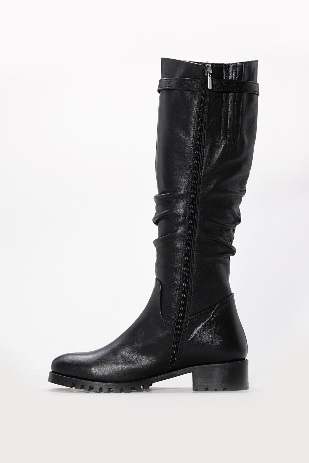 Laviovil İçi Yarım Kürklü Dışı Hakiki Deri Siyah Büzgülü Kadın Çizme AH0806425261961
