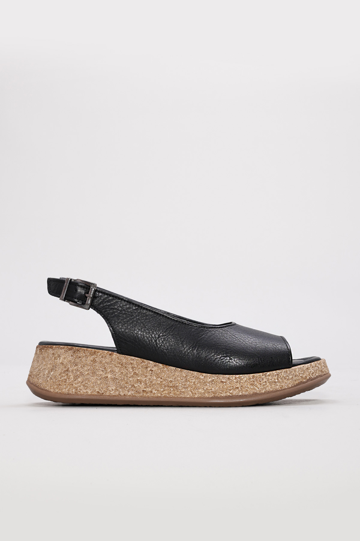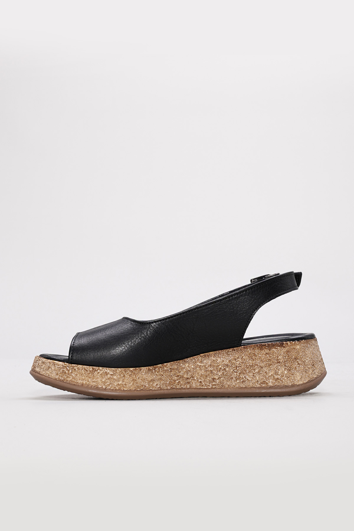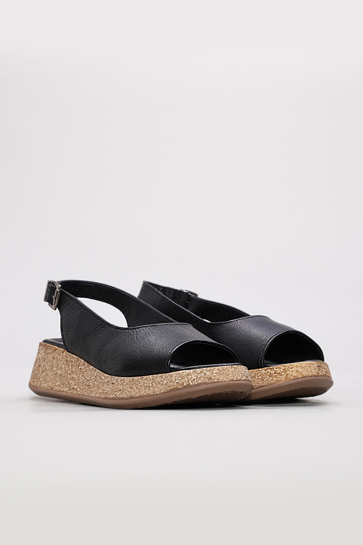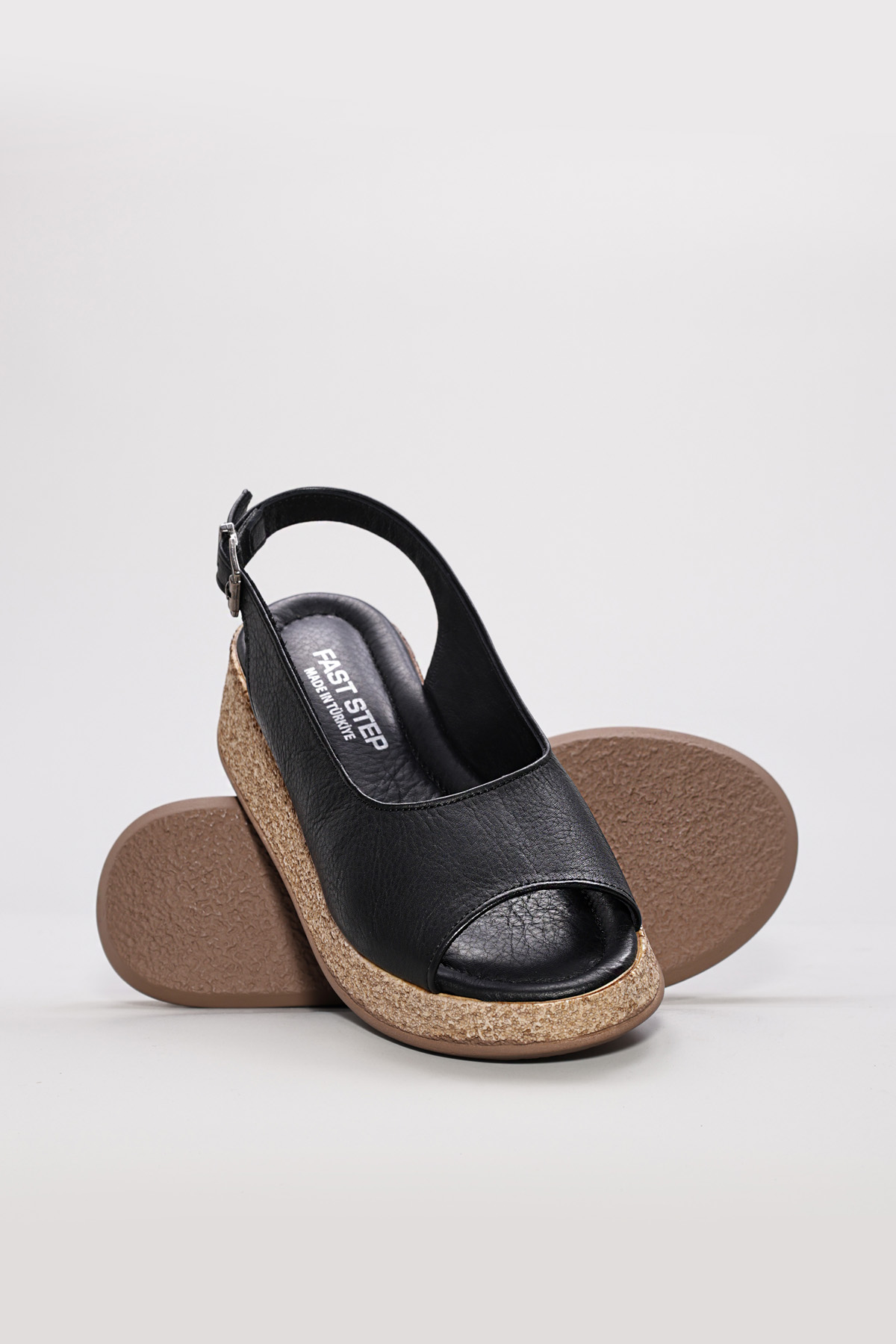 Laviovil İçi Dışı Hakiki Deri Siyah Kadın Dolgu Topuklu Sandalet AH0822726115424