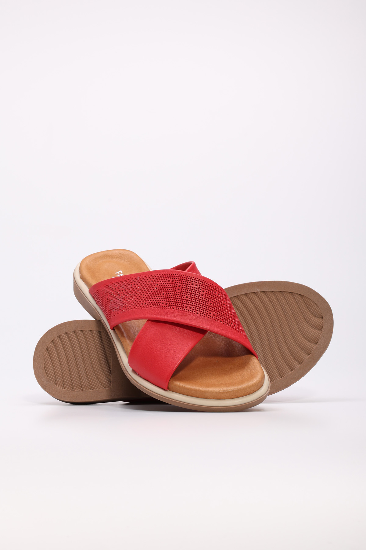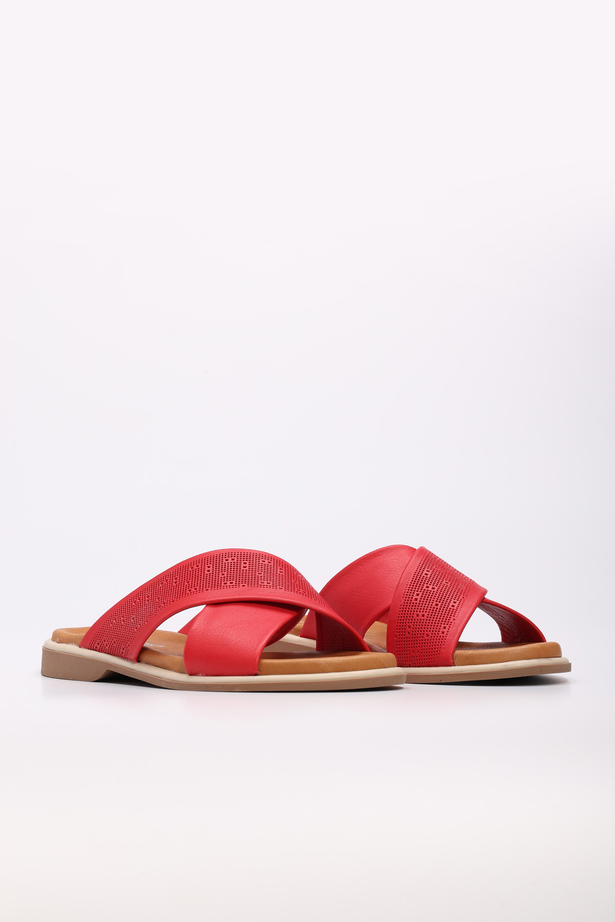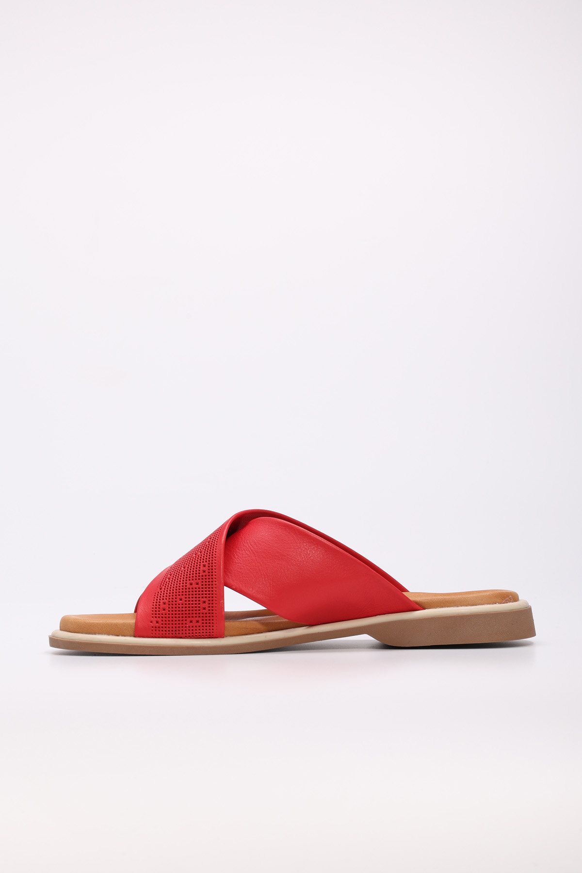 Laviovil İçi Dışı Hakiki Deri Kırmızı Çapraz Kadın Düz Terlik AH089722611306