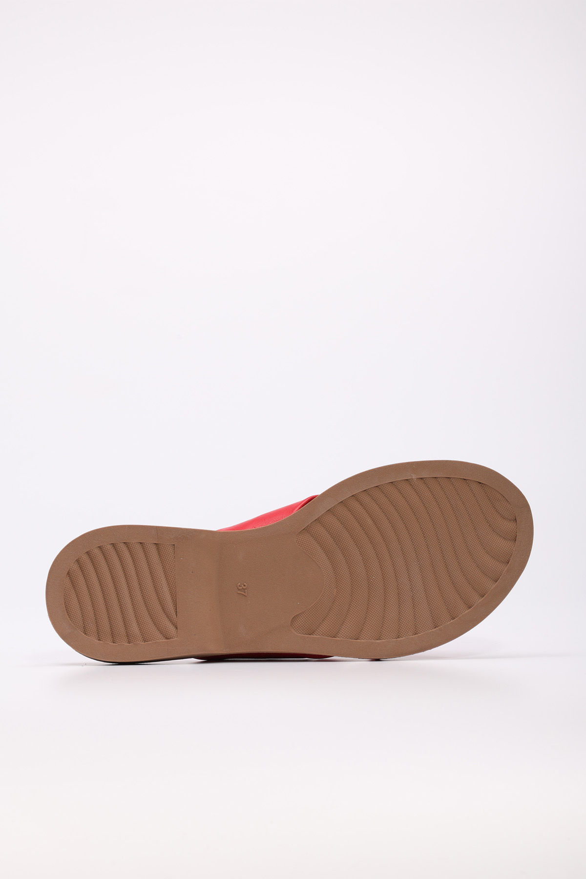 Terlik Laviovil İçi Dışı Hakiki Deri Kırmızı Çapraz Kadın Düz Terlik AH089722611306