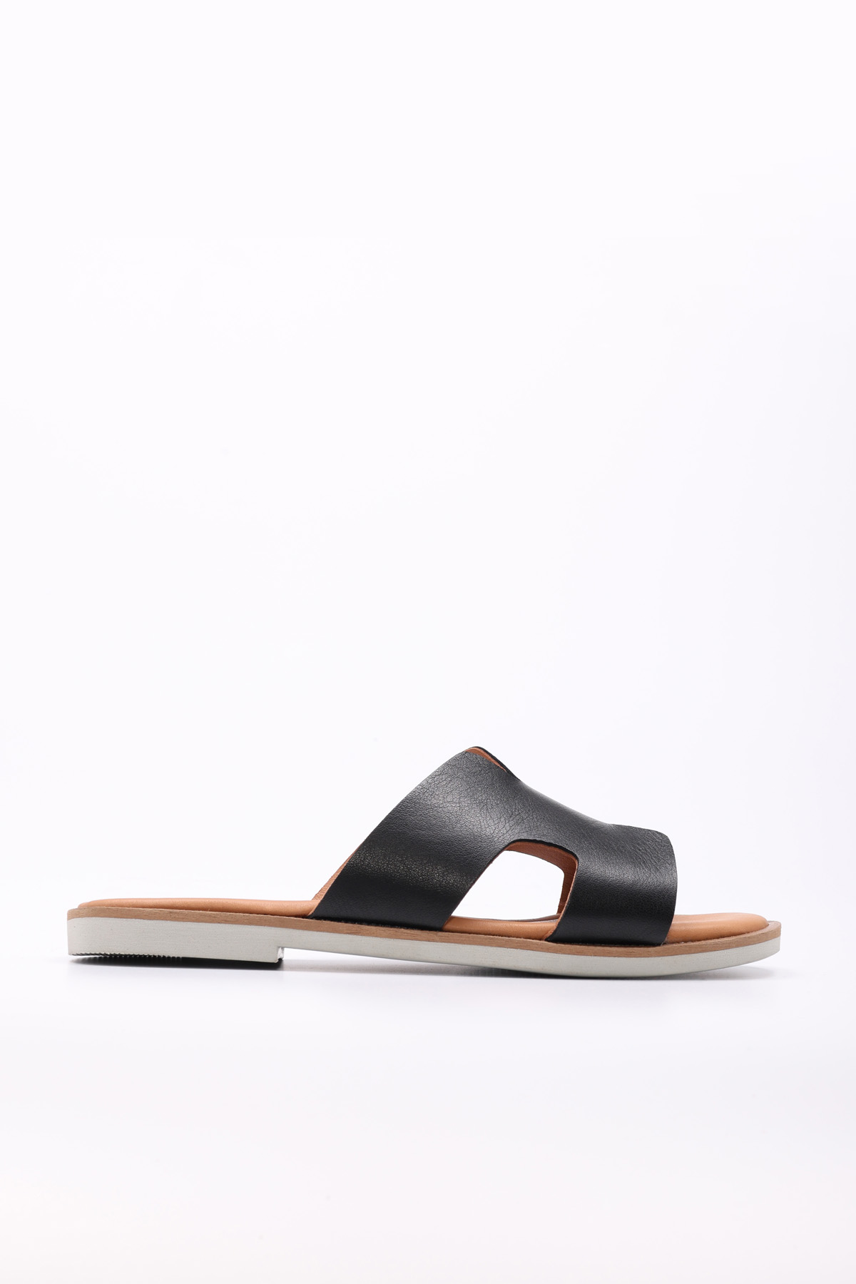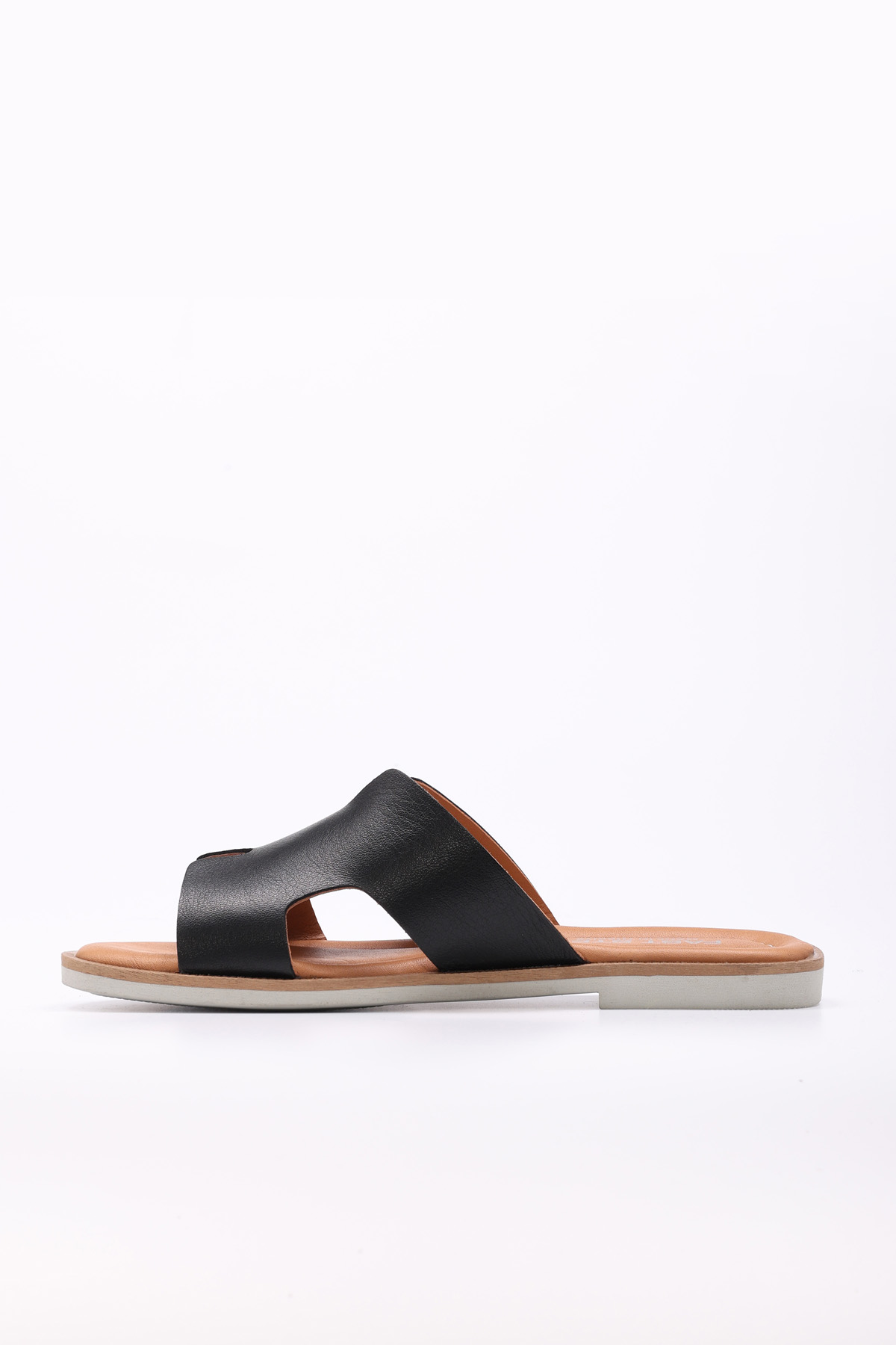 Laviovil İçi Dışı Hakiki Deri Siyah Rahat Kadın Düz Terlik AH0822726116513