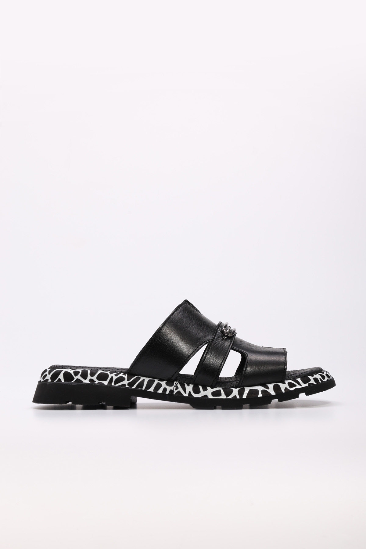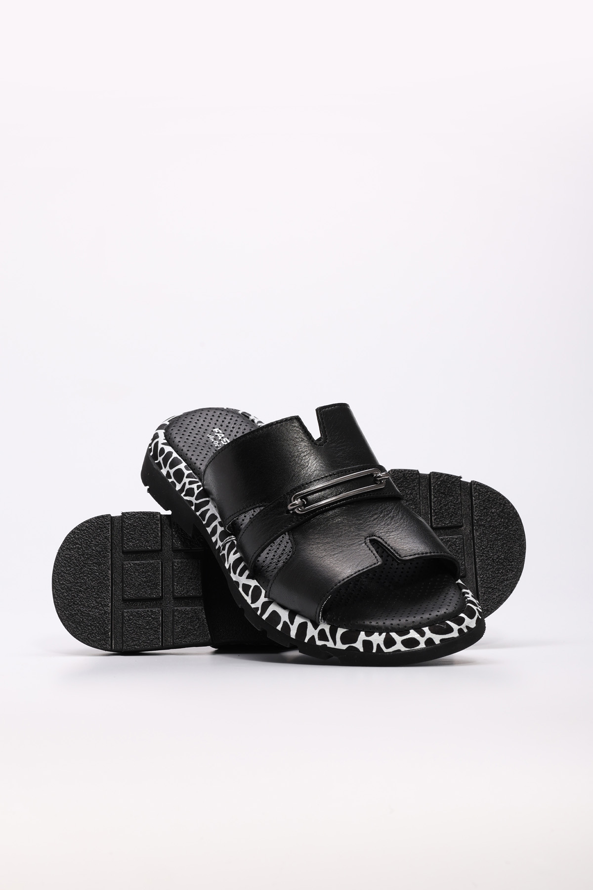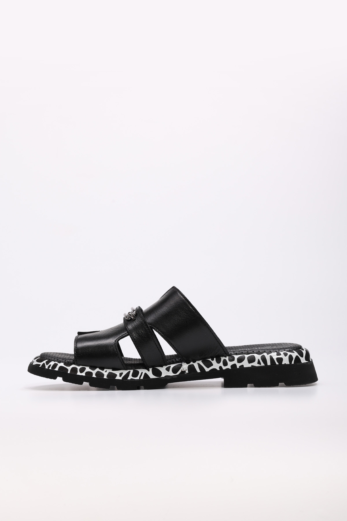 Laviovil İçi Dışı Hakiki Deri Siyah Şık Kadın Düz Terlik AH087102611097