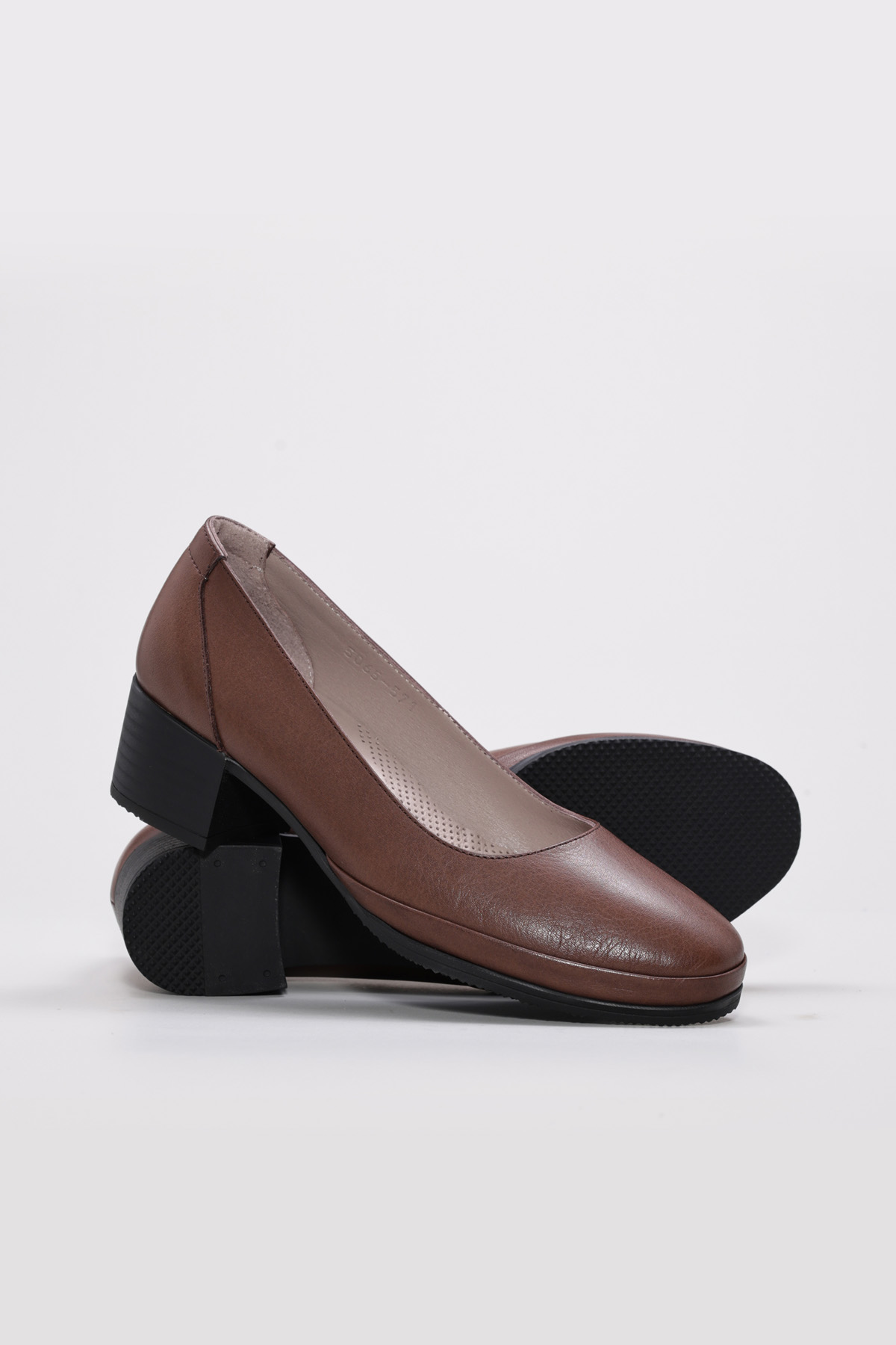 Topuklu Ayakkabı Laviovil İçi Dışı Hakiki Deri Kahve Rahat Kadın Kalın Topuklu Ayakkabı AH088892615170