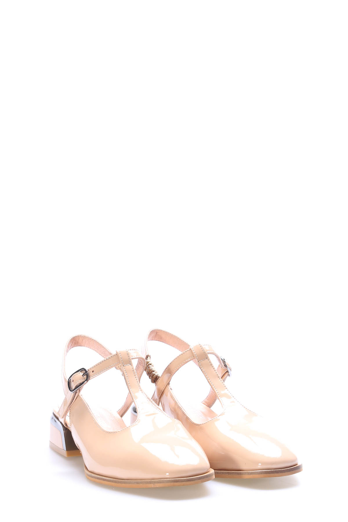 Laviovil İçi Dışı Hakiki Rugan Deri Bej Kadın Kısa Topuklu Ayakkabı AH08064261217