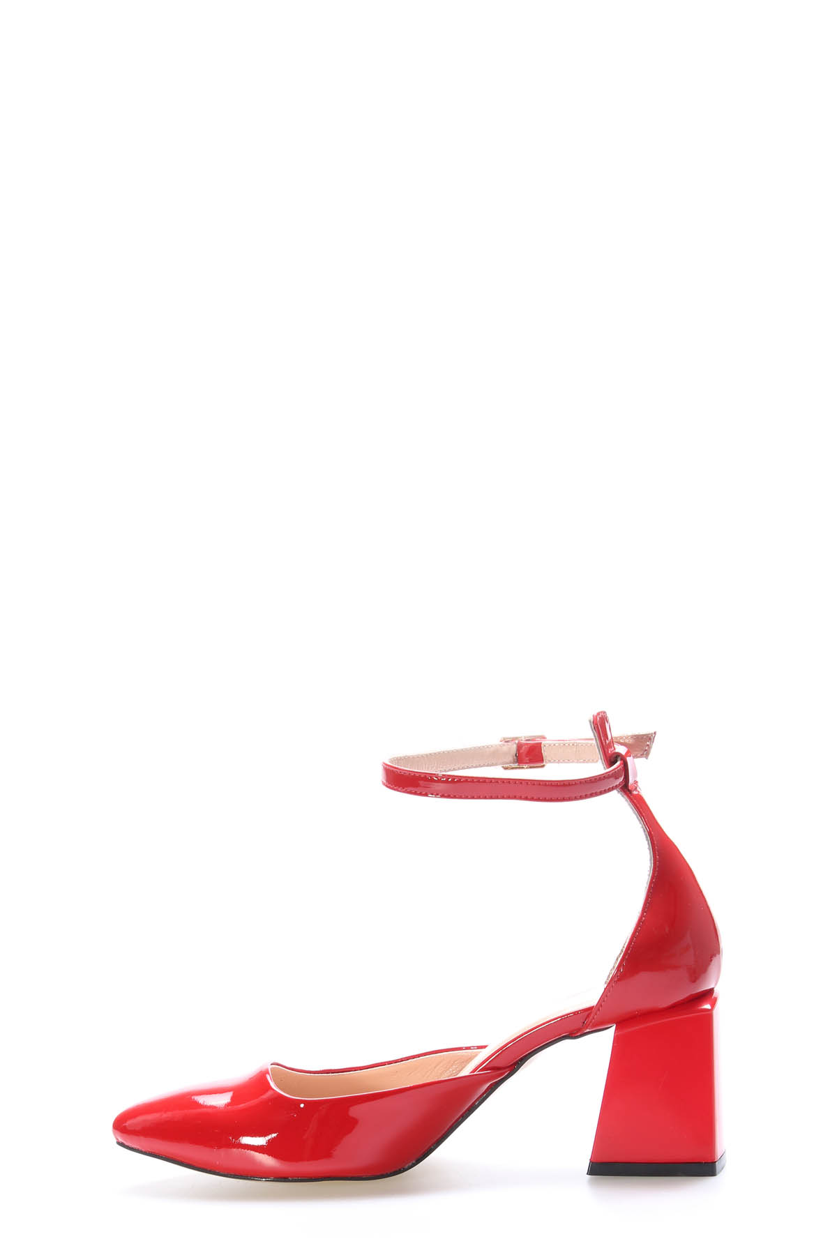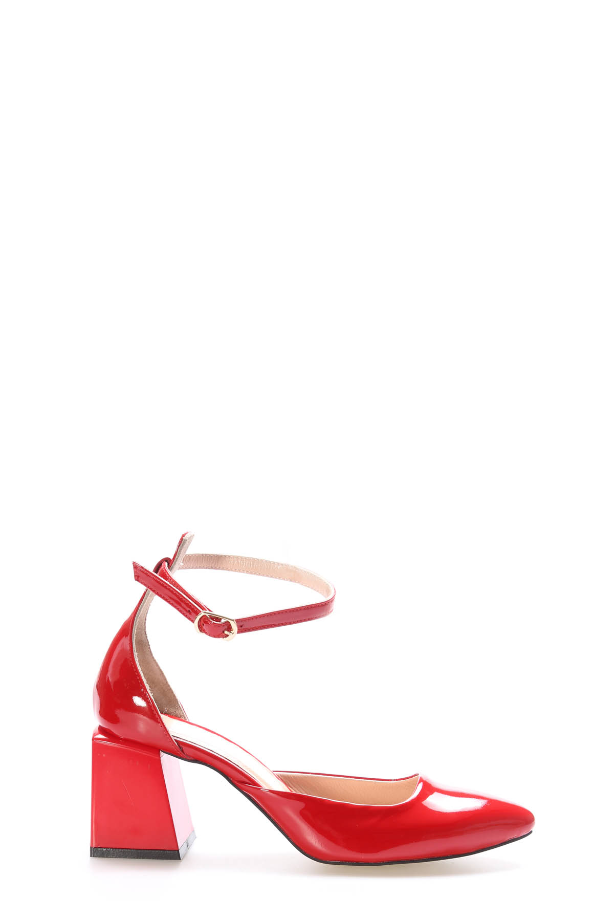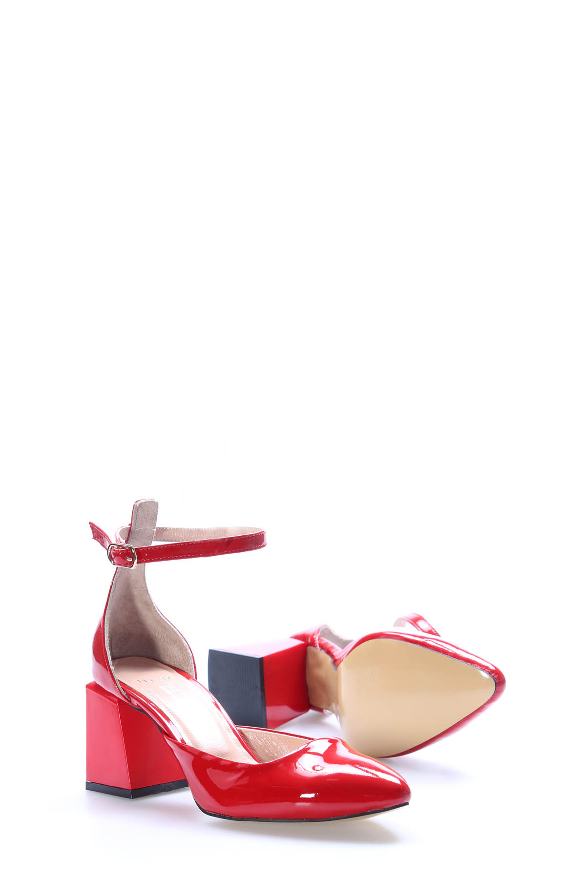 • Laviovil İçi Dışı Hakiki Rugan Deri Kırmızı Kadın Kalın Topuklu Ayakkabı AH08064261218