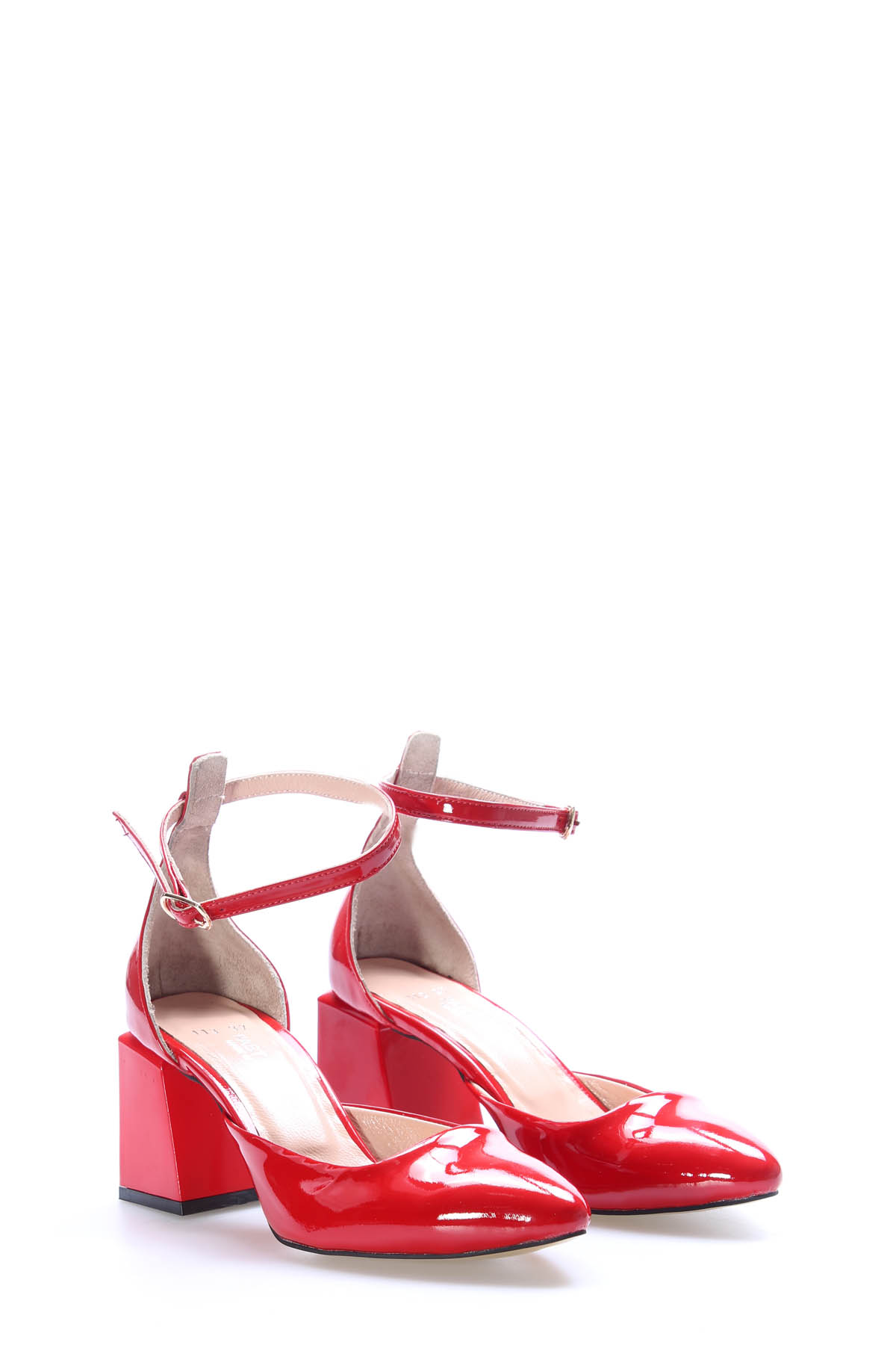 Topuklu Ayakkabı Laviovil İçi Dışı Hakiki Rugan Deri Kırmızı Kadın Kalın Topuklu Ayakkabı AH08064261218
