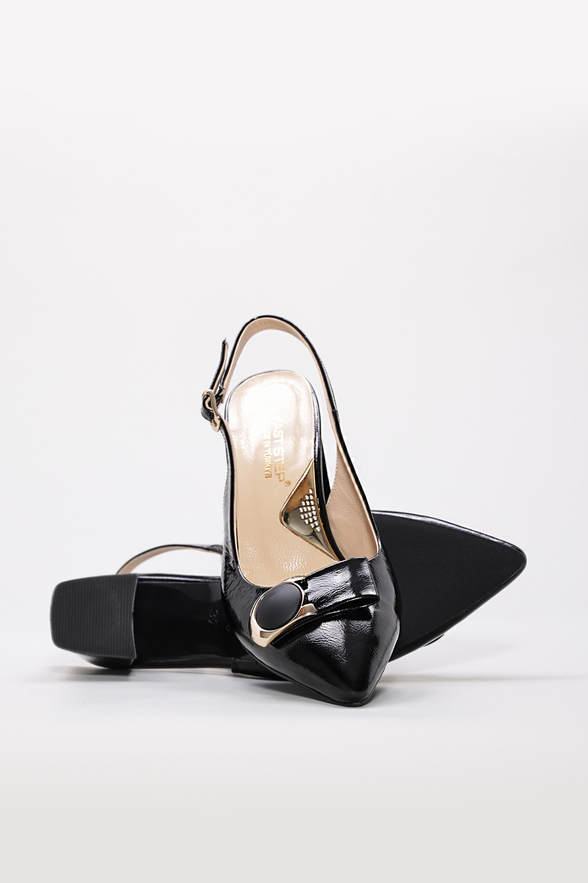 Topuklu Ayakkabı Laviovil İçi Dışı Hakiki Rugan Deri Siyah Kadın İnce Topuklu Ayakkabı AH0821526121082