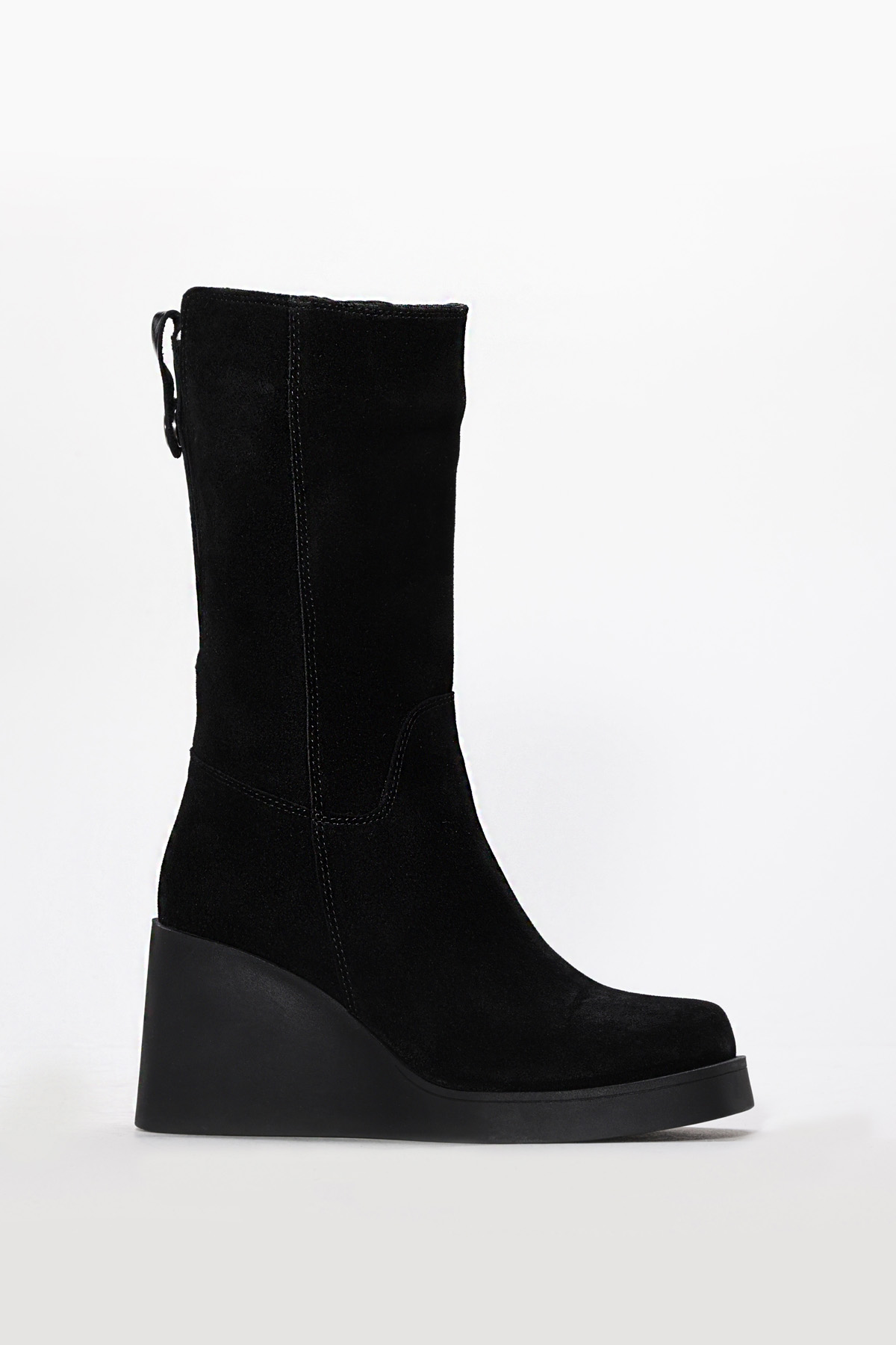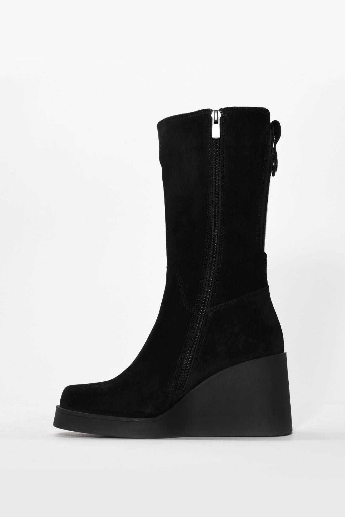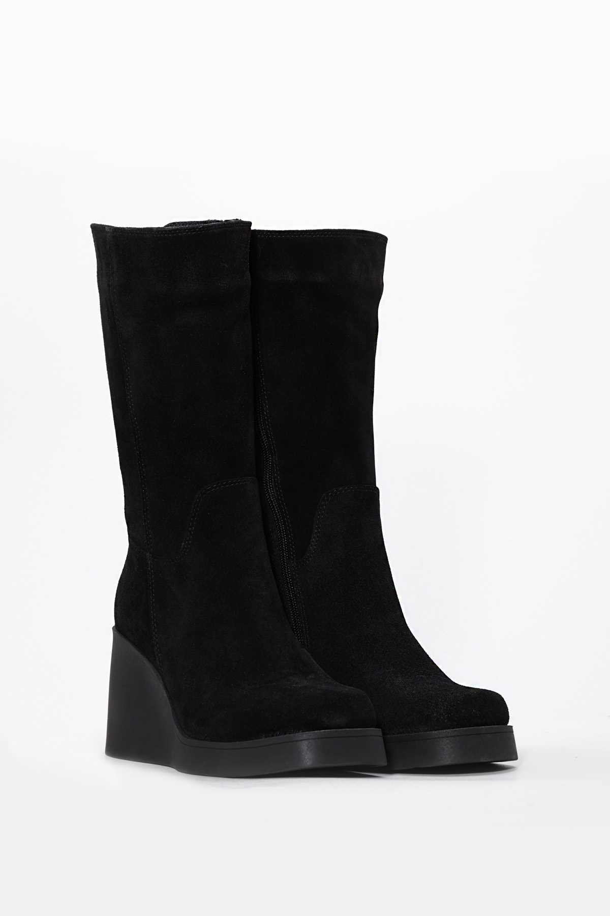 Laviovil Kaliteli Hakiki Süet Deri Siyah Kadın Dolgu Topuk Çizme AH08124192612606