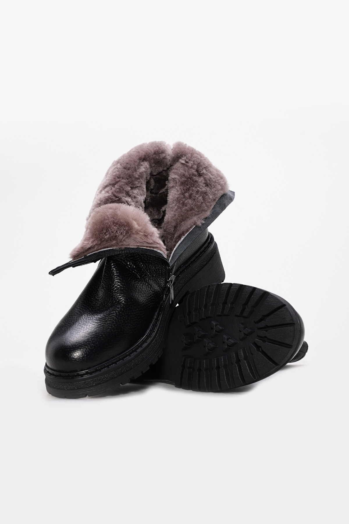 Laviovil İçi Kürklü Dışı Hakiki Floter Deri Siyah Kadın Klasik Bot AH0825711261732