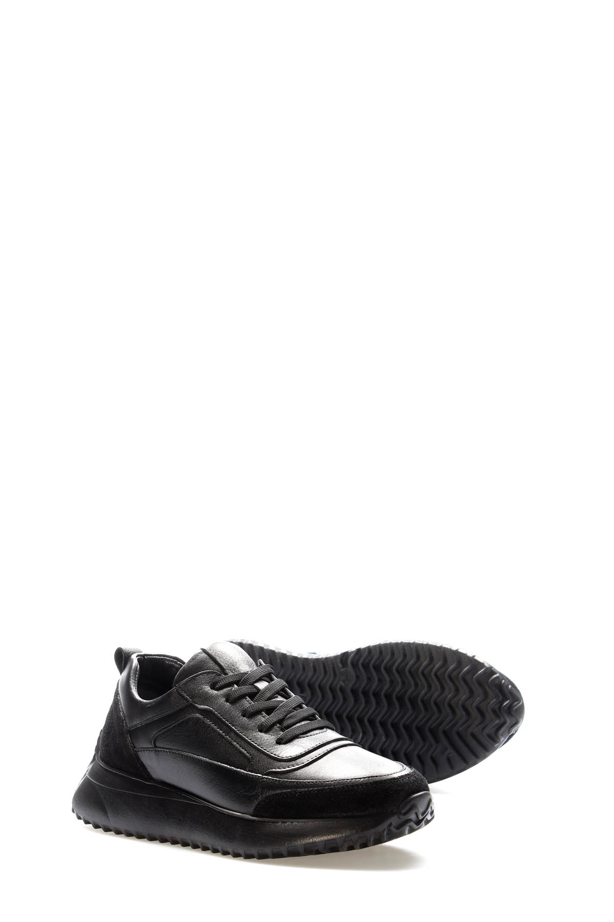 • Laviovil İçi Dışı Hakiki Deri Siyah Bağcıklı Kadın Casual Ayakkabı AH081362611008