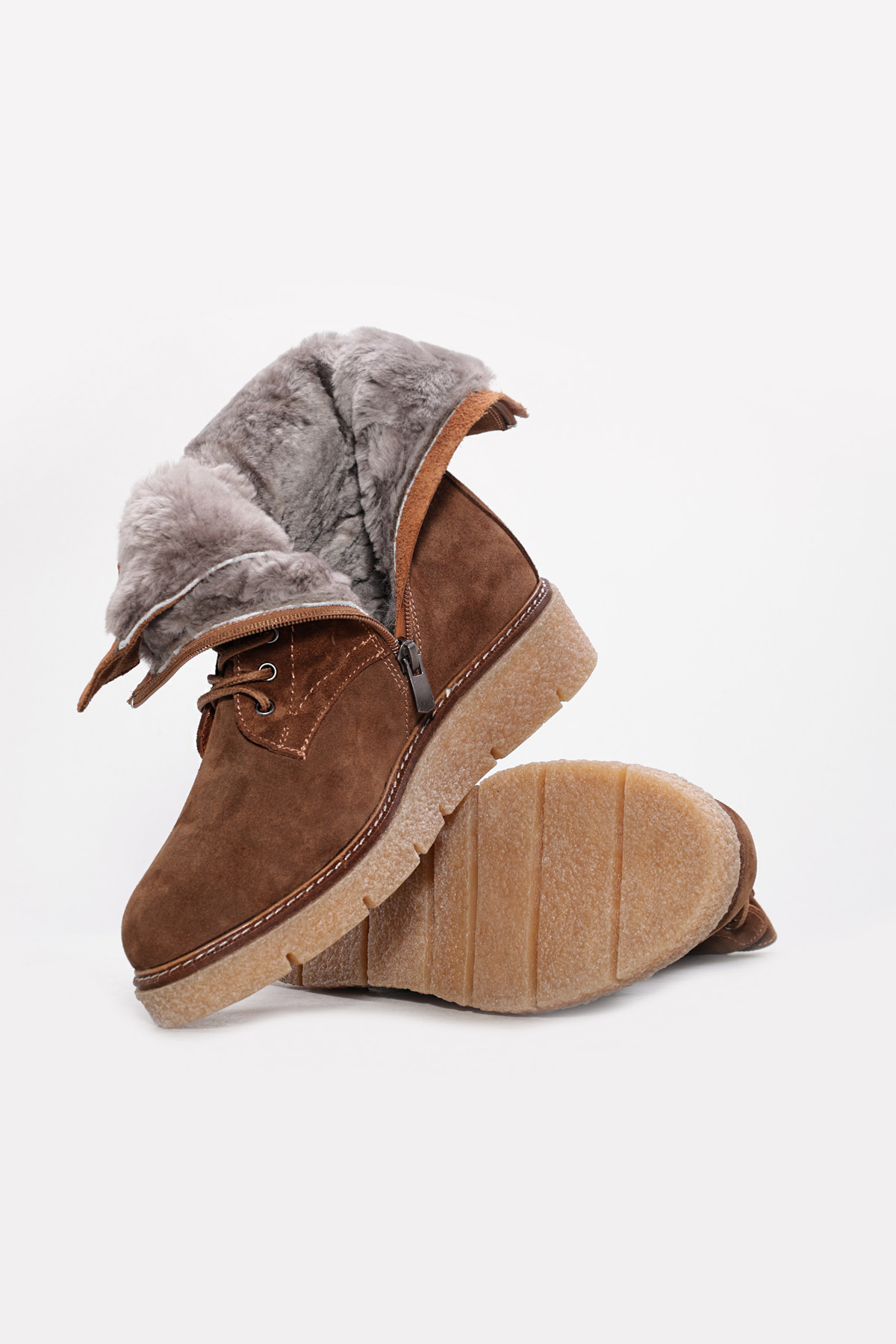 • Laviovil İçi Kürklü Dışı Hakiki Süet Deri Taba Kadın Postal Bot AH08657112612609