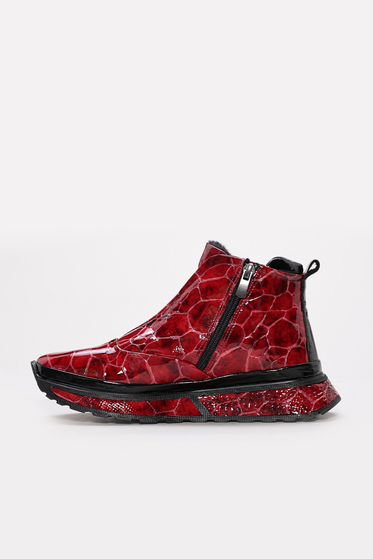 Kadın Ayakkabı Laviovil Kaliteli Hakiki Kroko Deri Kırmızı Kadın Spor Bot AH0825419261225