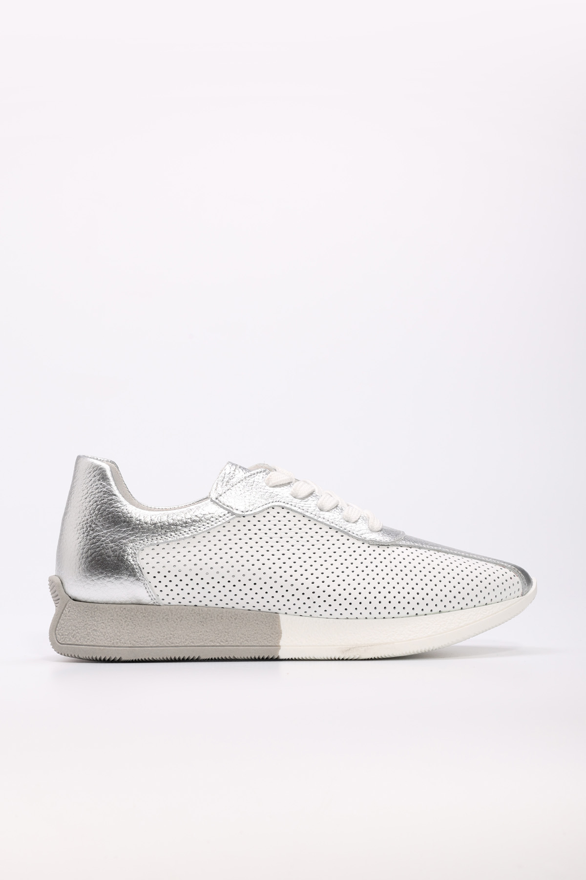Laviovil İçi Dışı Hakiki Deri Beyaz Gümüş Kadın Spor Ayakkabı AH083562611668