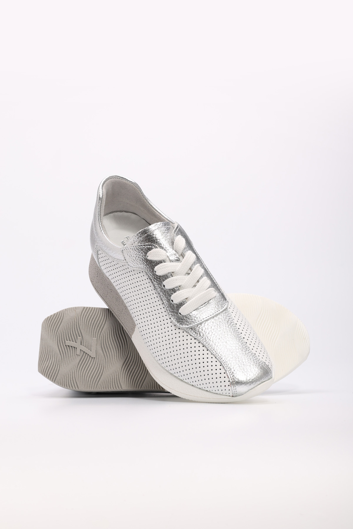 • Laviovil İçi Dışı Hakiki Deri Beyaz Gümüş Kadın Spor Ayakkabı AH083562611668