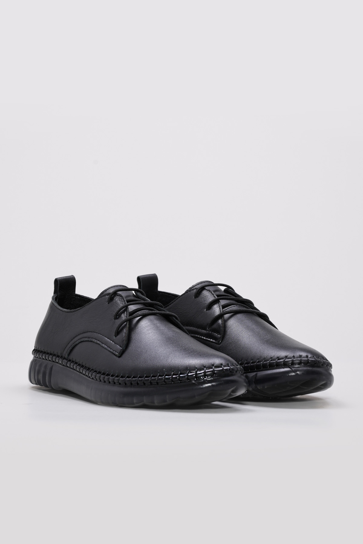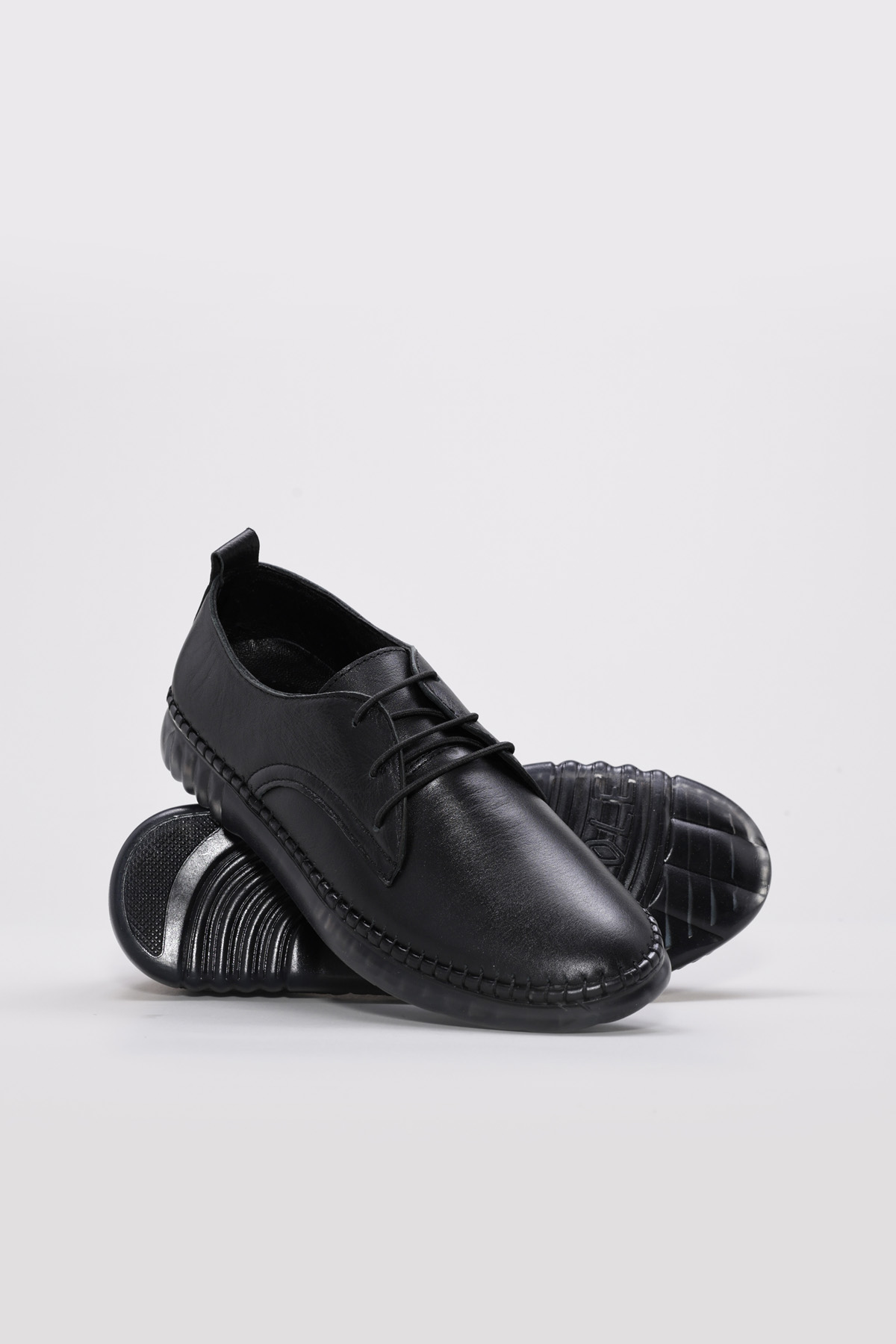 • Laviovil İçi Dışı Hakiki Deri Siyah Bağcıklı Kadın Casual Günlük Ayakkabı AH086092615171