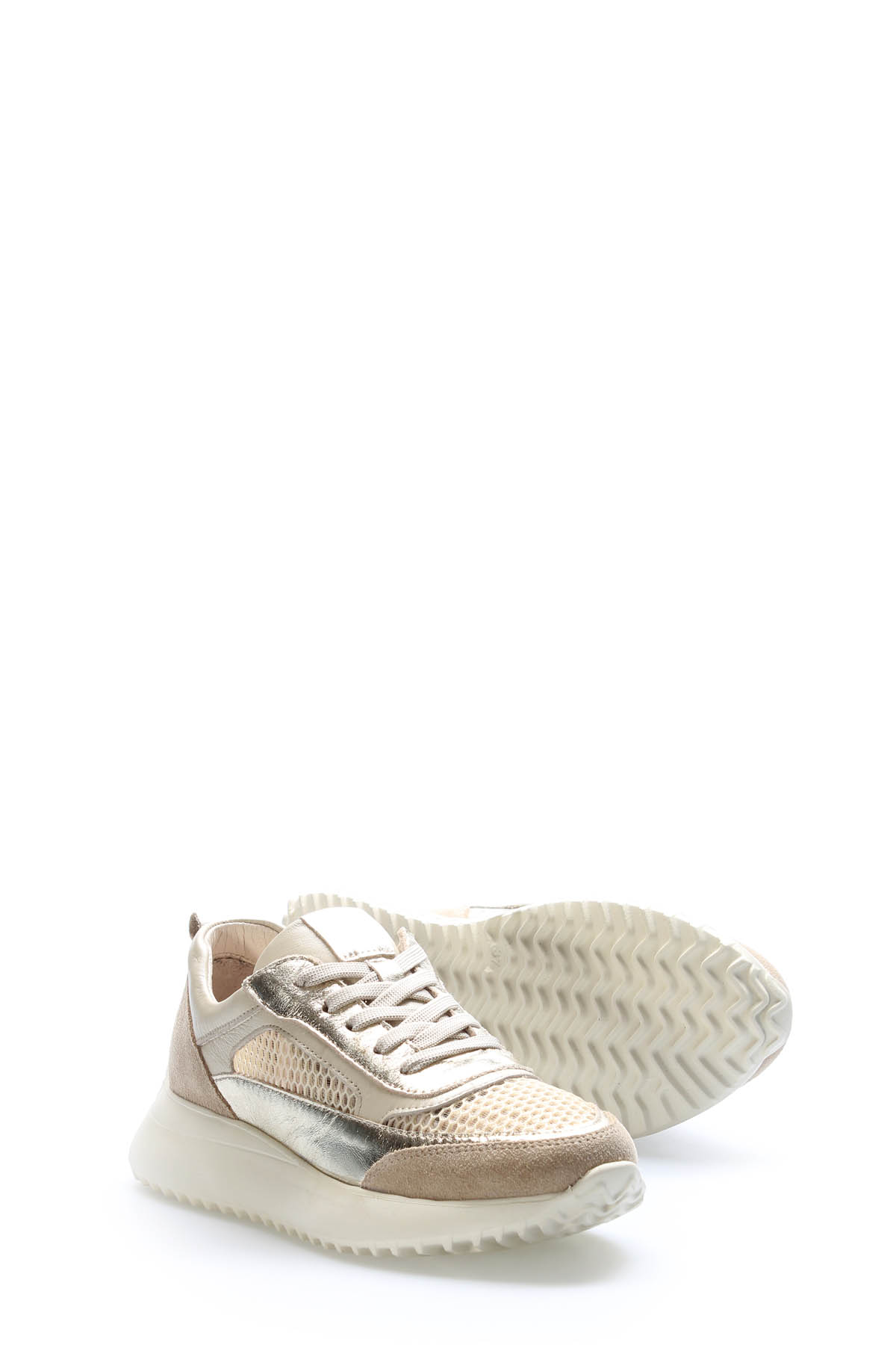 • Laviovil İçi Dışı Hakiki Deri Bej Altın Kadın Casual Ayakkabı AH081362619136