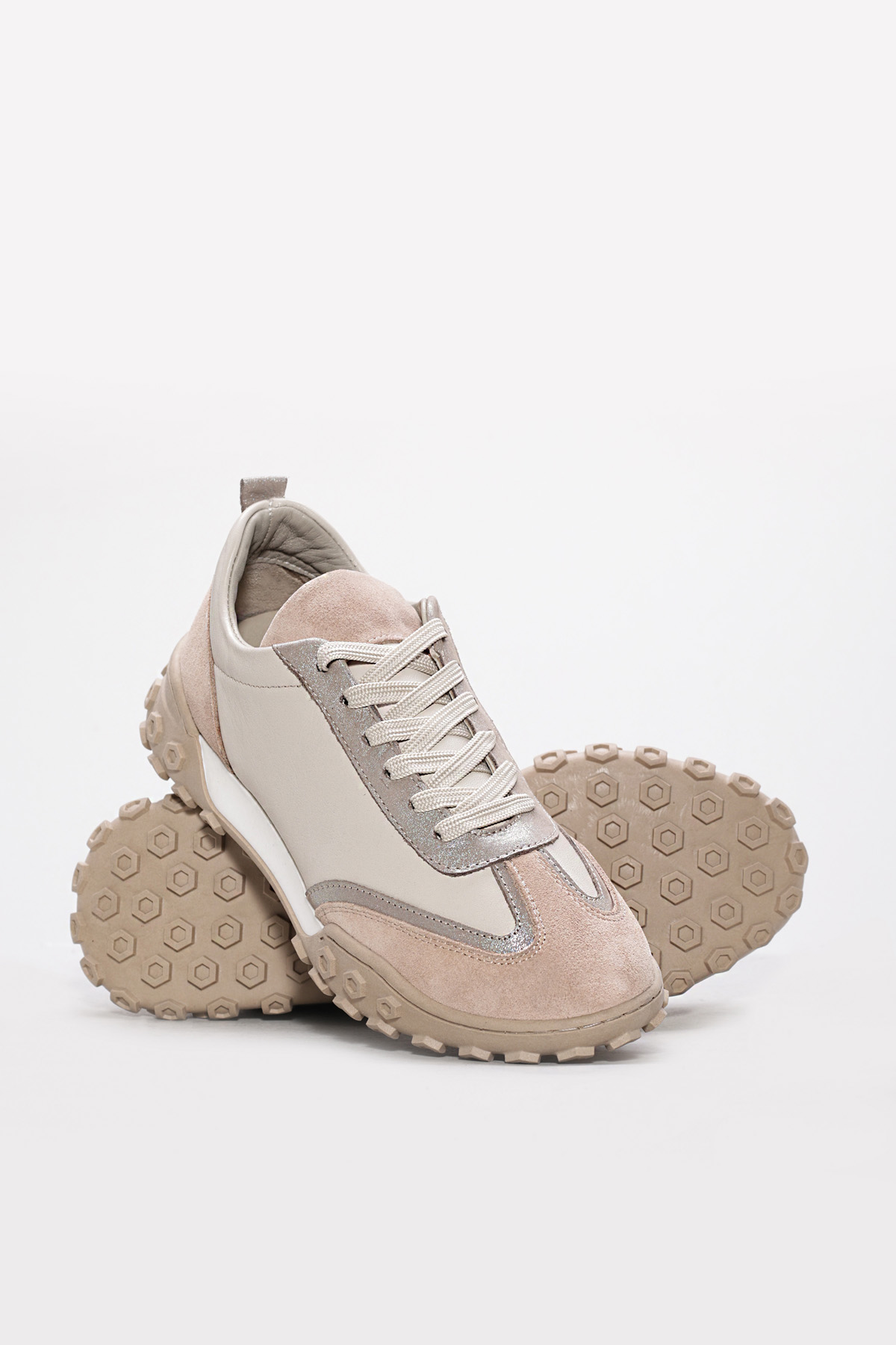 • Laviovil İçi Dışı Hakiki Deri Bej Kadın Spor Sneaker Ayakkabı AH0816926124140