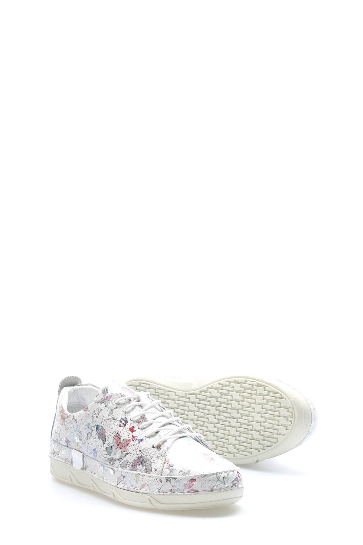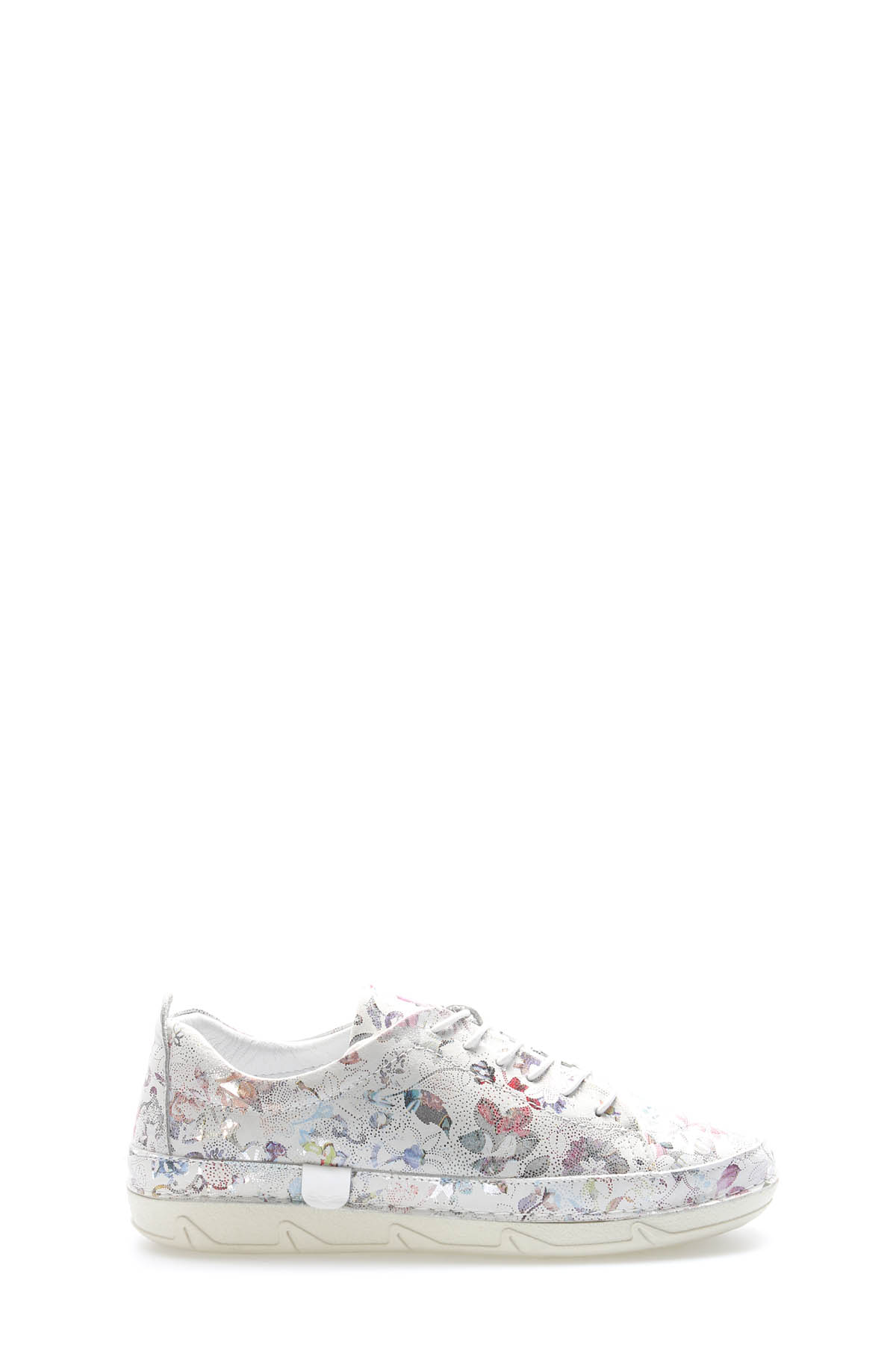 Laviovil İçi Dışı Hakiki Deri Beyaz Çiçekli Rahat Kadın Casual Ayakkabı AH0816026111055