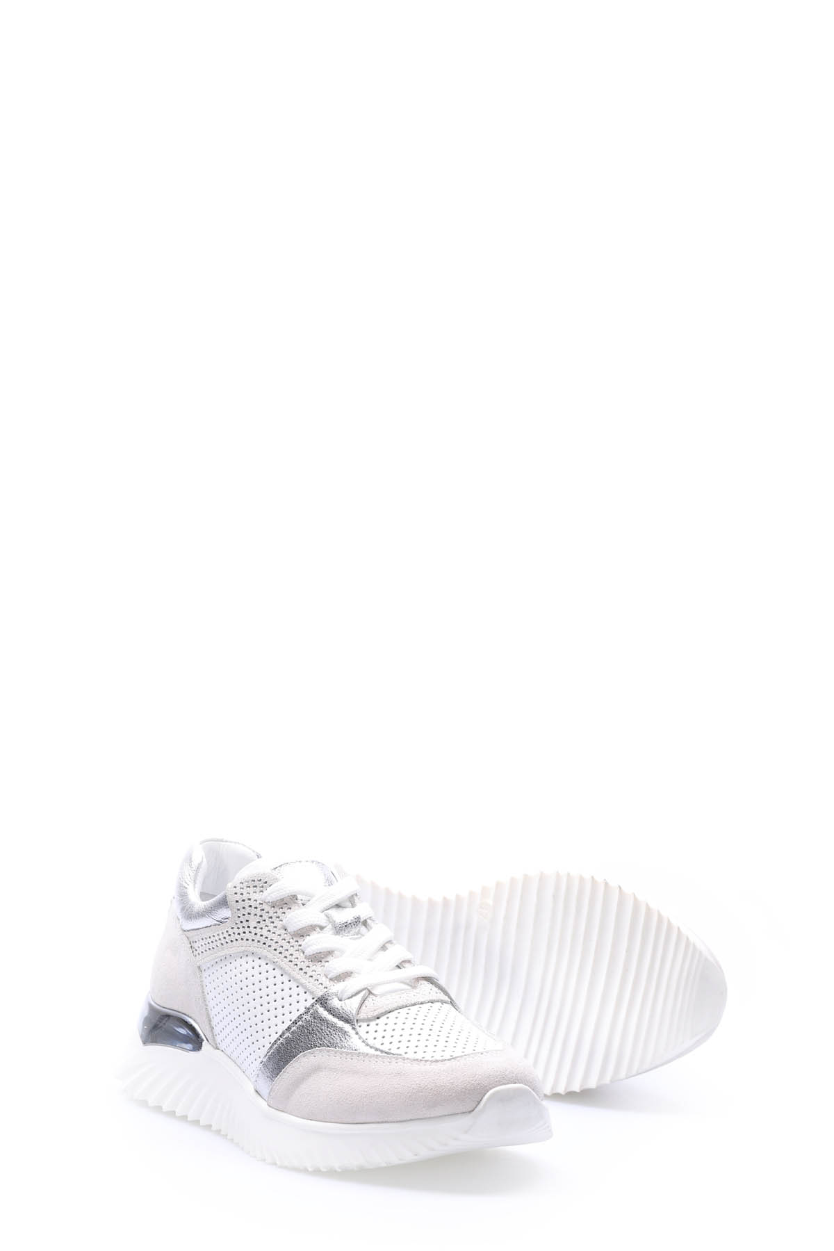Laviovil İçi Dışı Hakiki Deri Beyaz Gümüş Kadın Casual Ayakkabı AH0875726125146