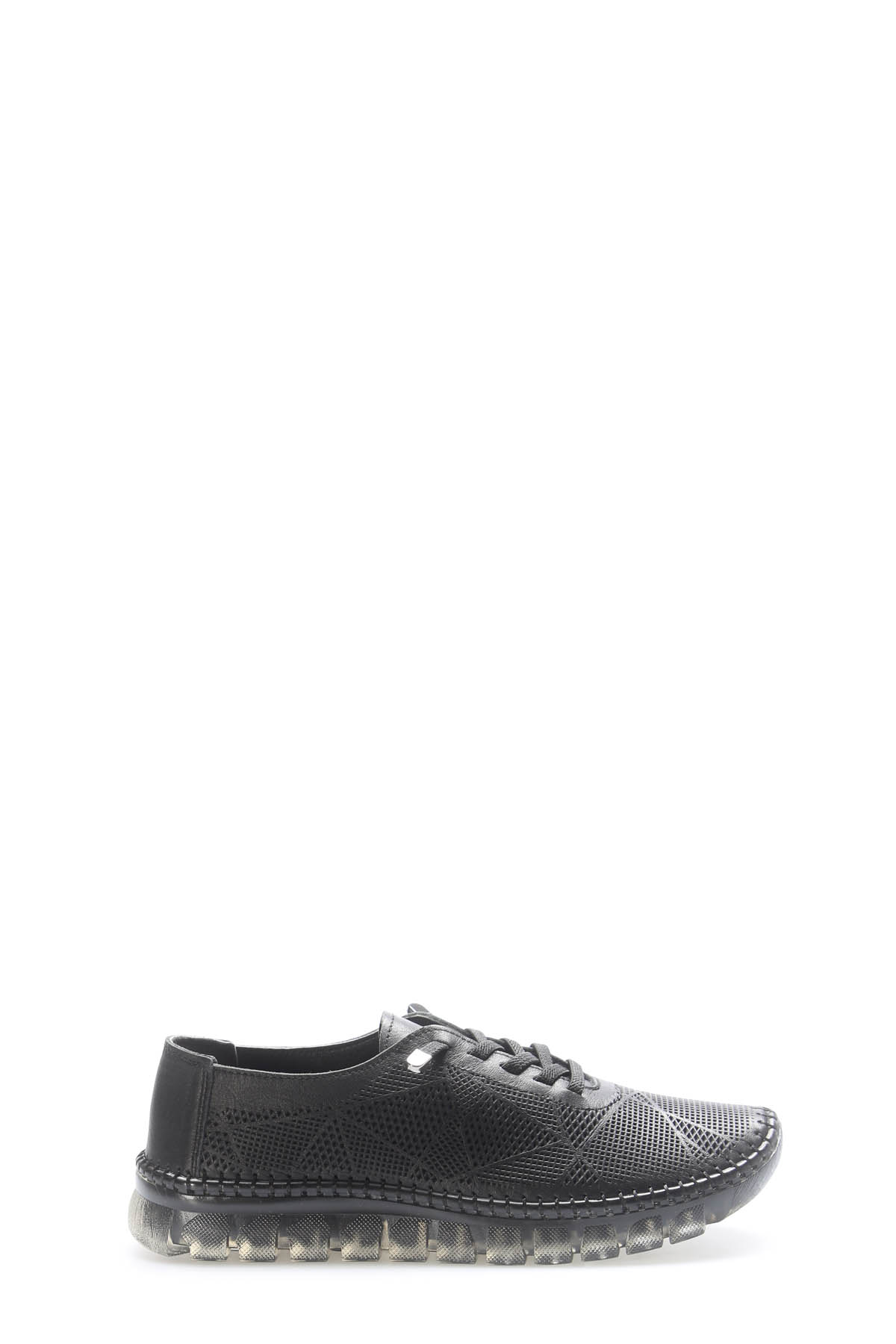 Laviovil İçi Dışı Hakiki Deri Siyah Bağcıklı Kadın Casual Ayakkabı AH0841926226