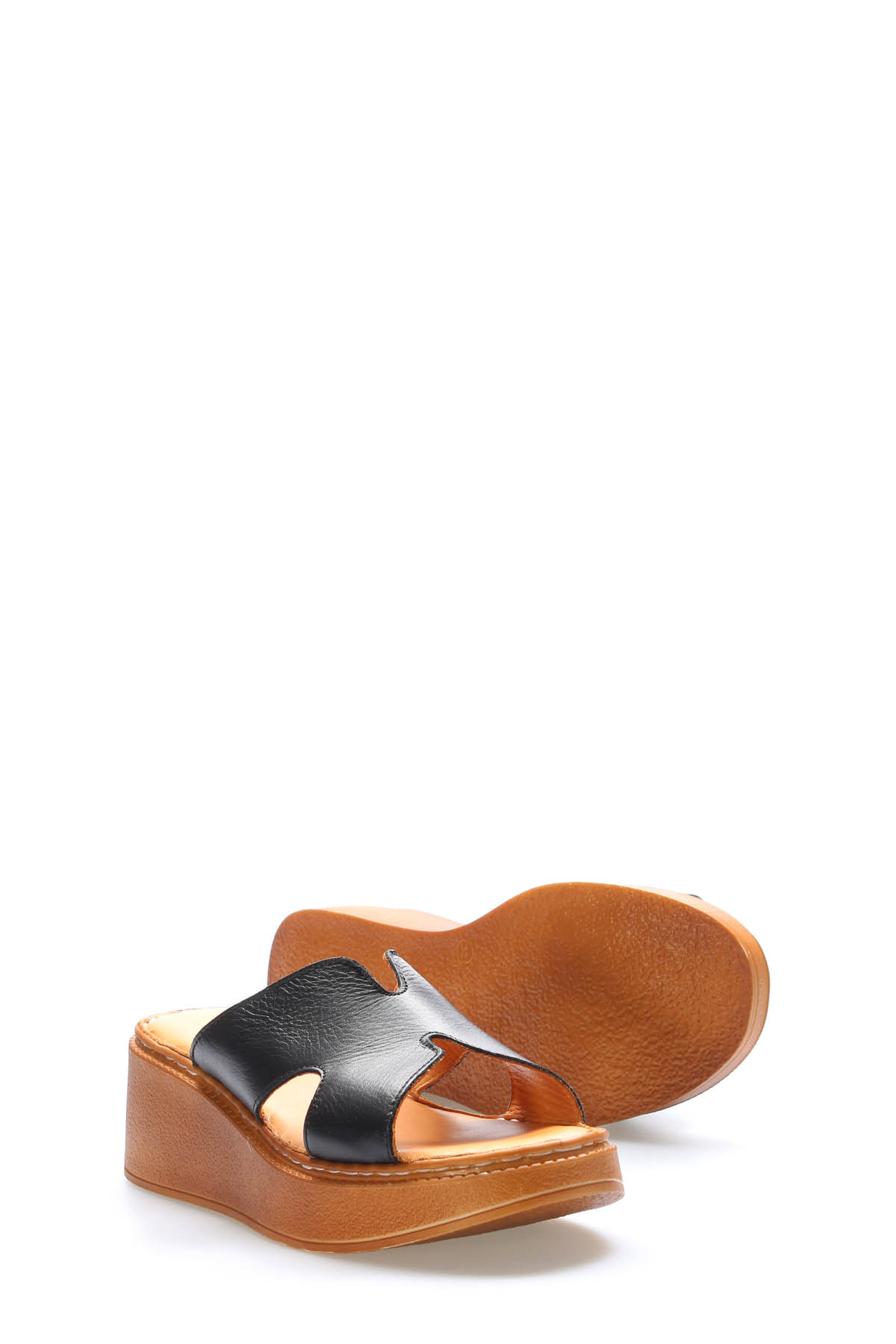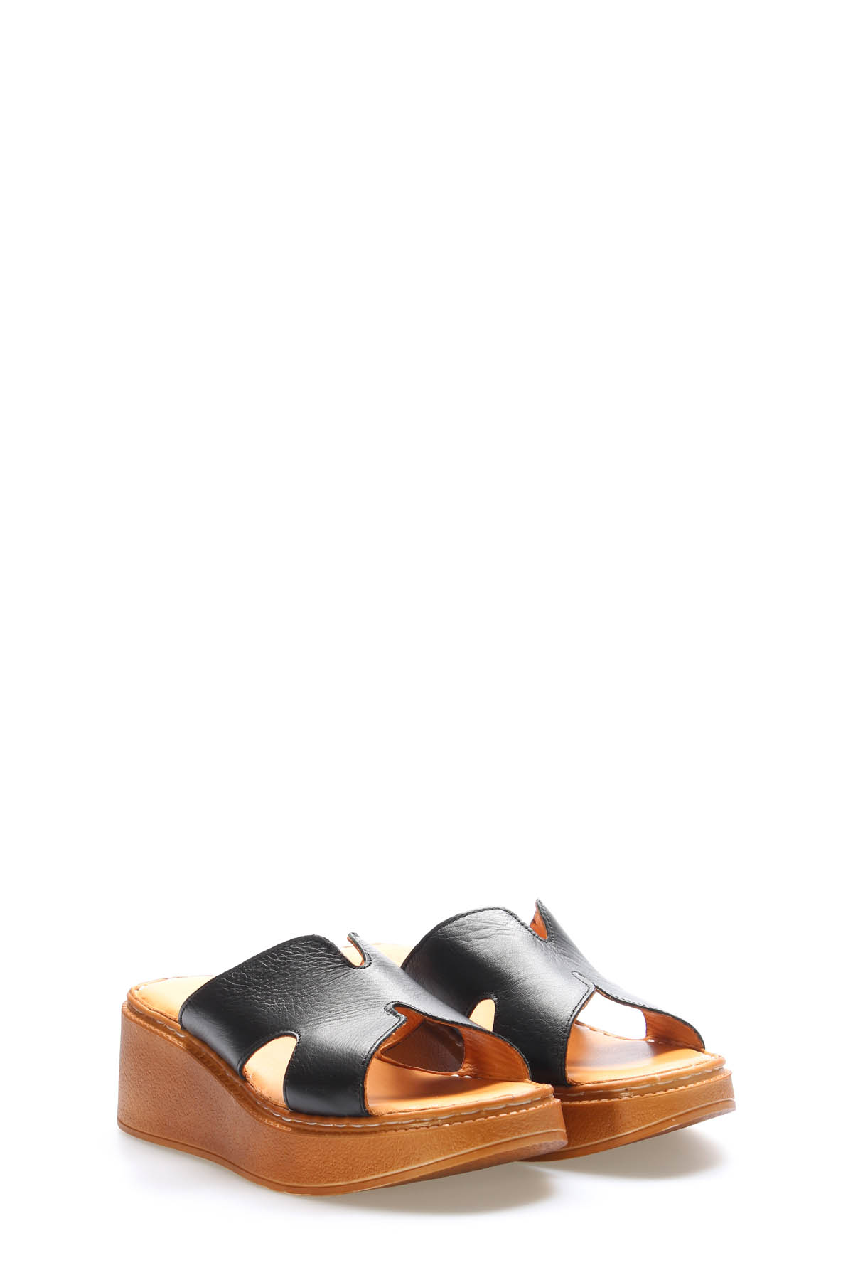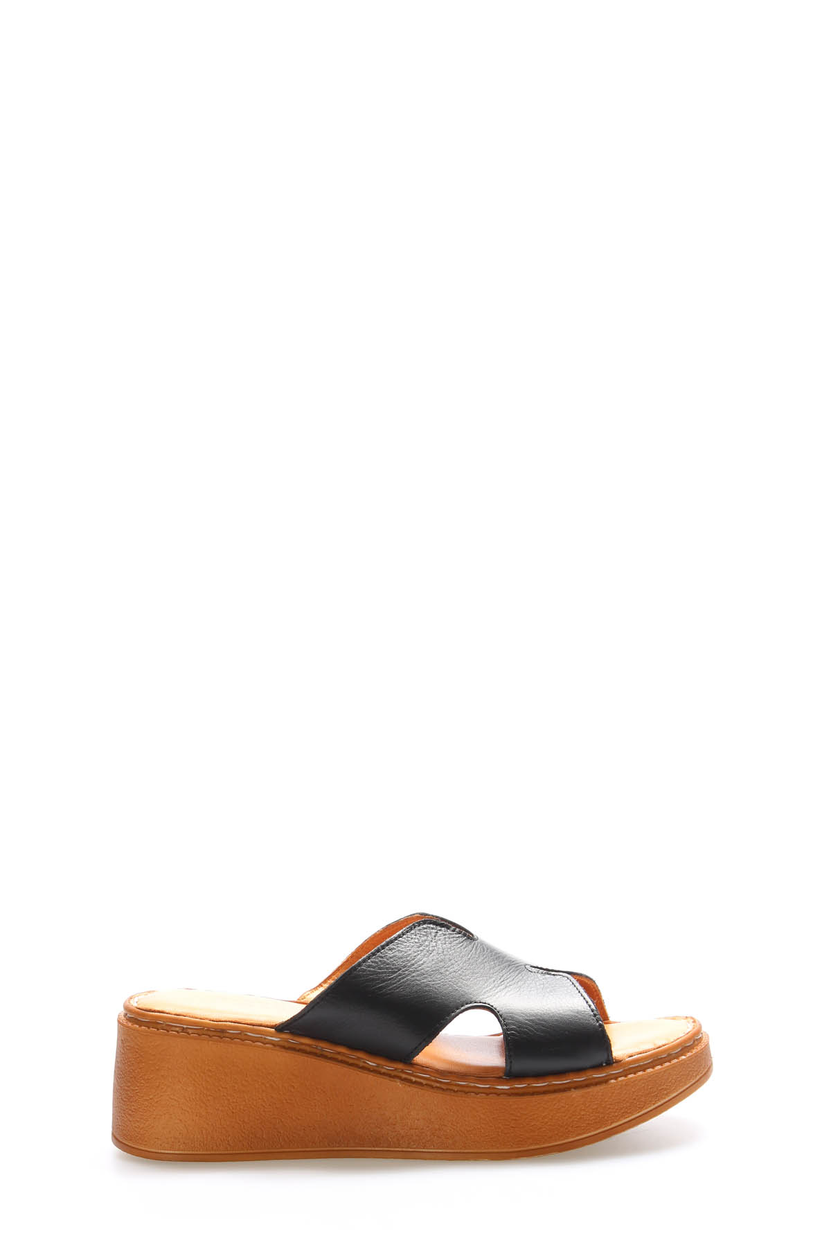 Laviovil İçi Dışı Hakiki Deri Siyah Kadın Dolgu Topuk Terlik AH08972ZA1365