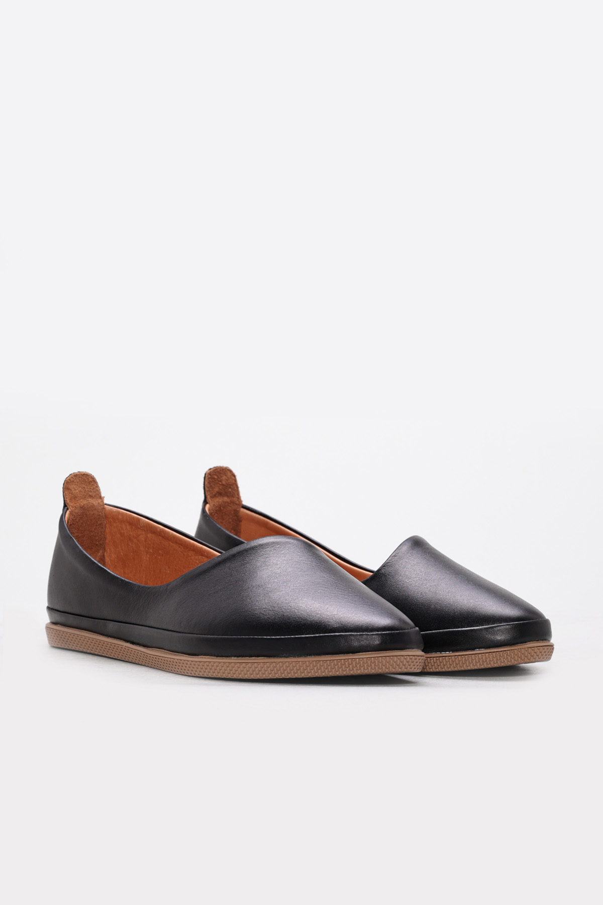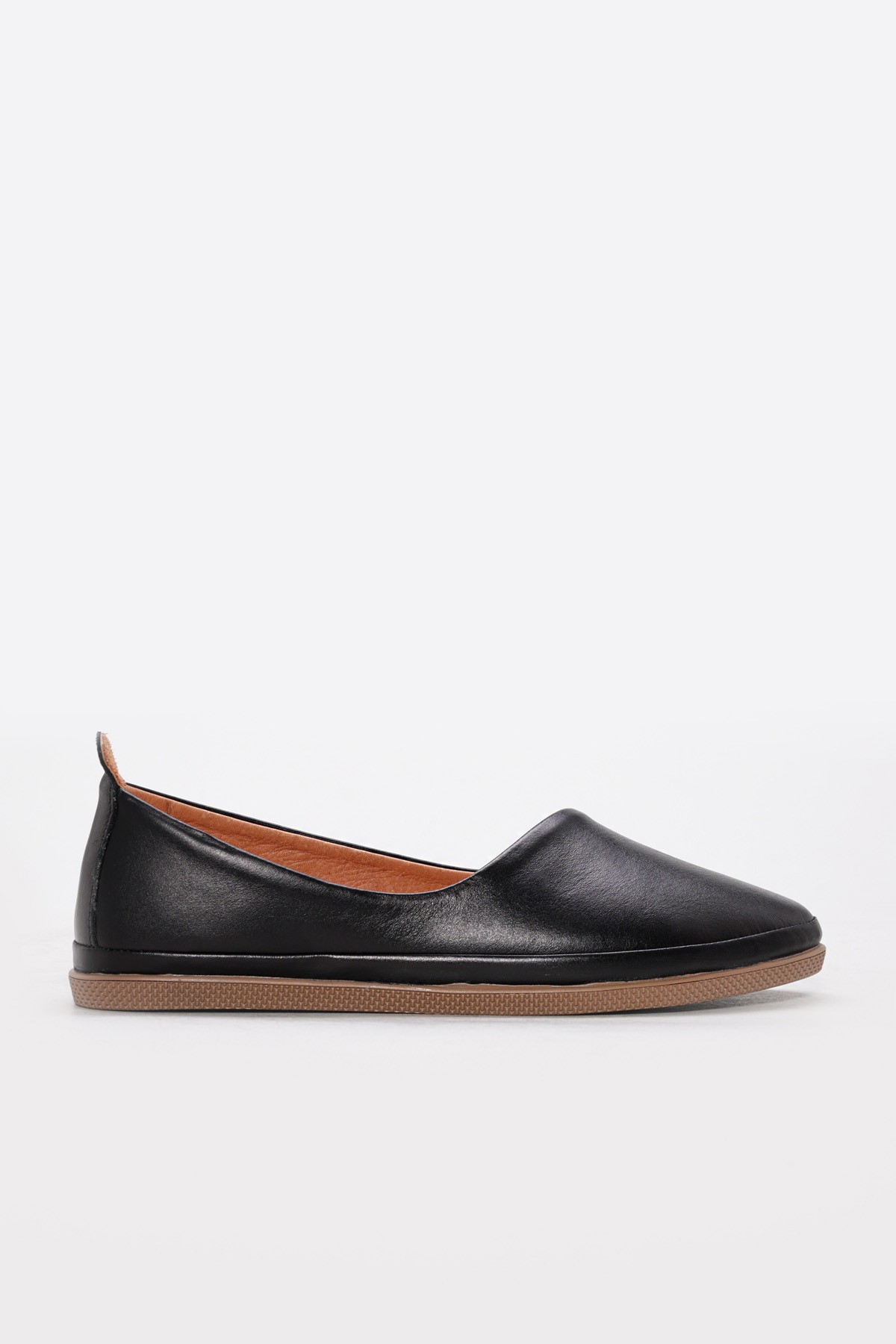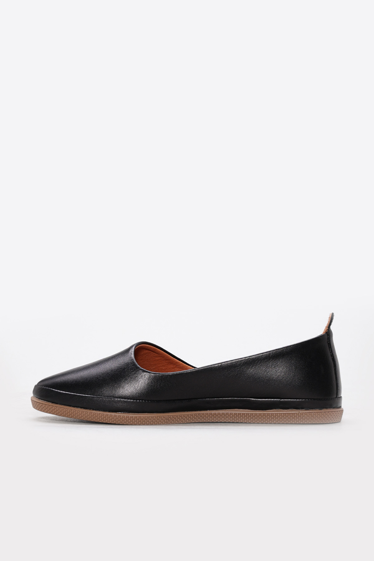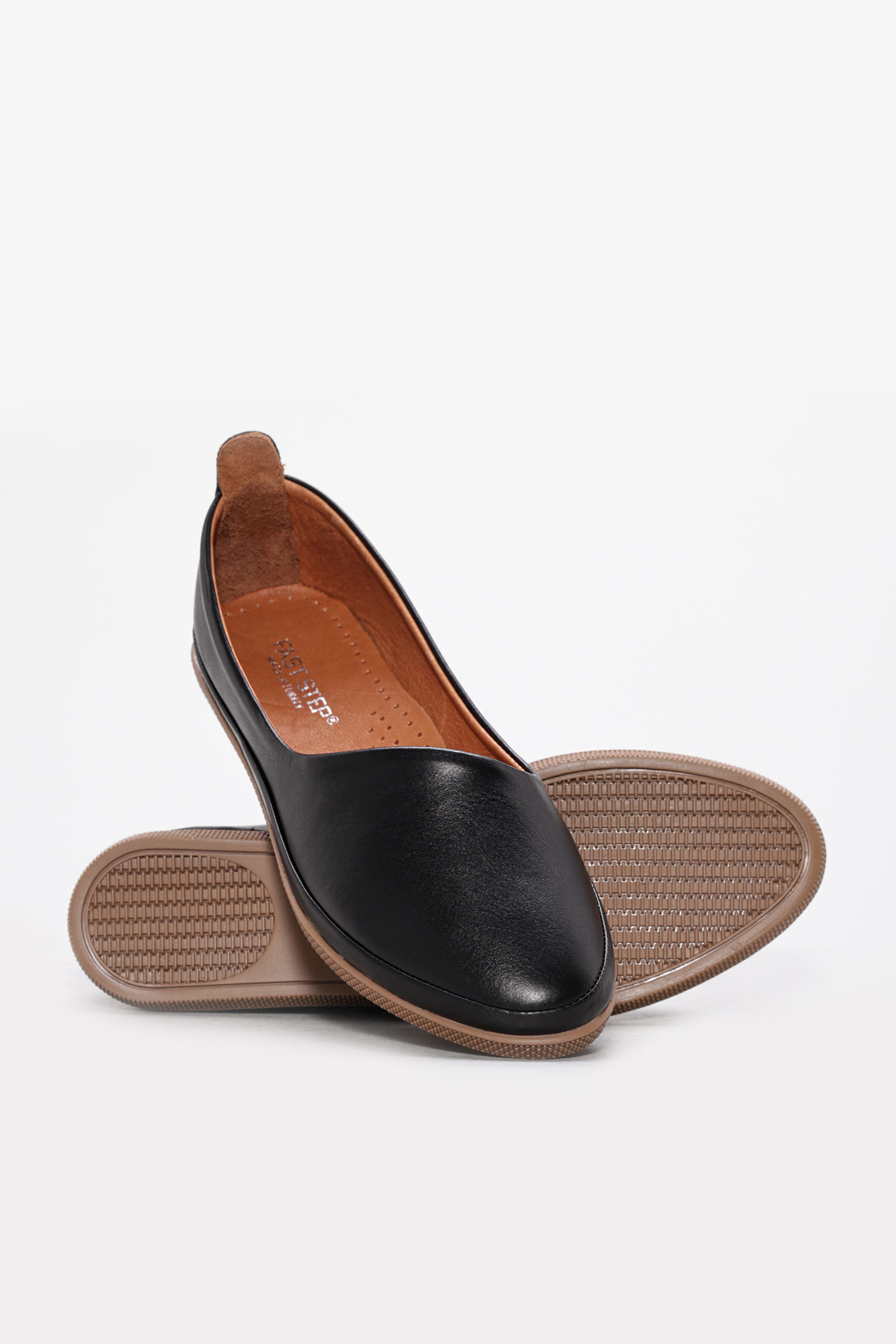 Laviovil İçi Dışı Hakiki Deri Siyah Şık Kadın Babet Ayakkabı AH082402612205