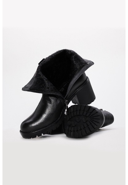 Laviovil İçi Kürklü Dışı Hakiki Floter Deri Siyah Kadın Chelsea Bot AH08710112616112