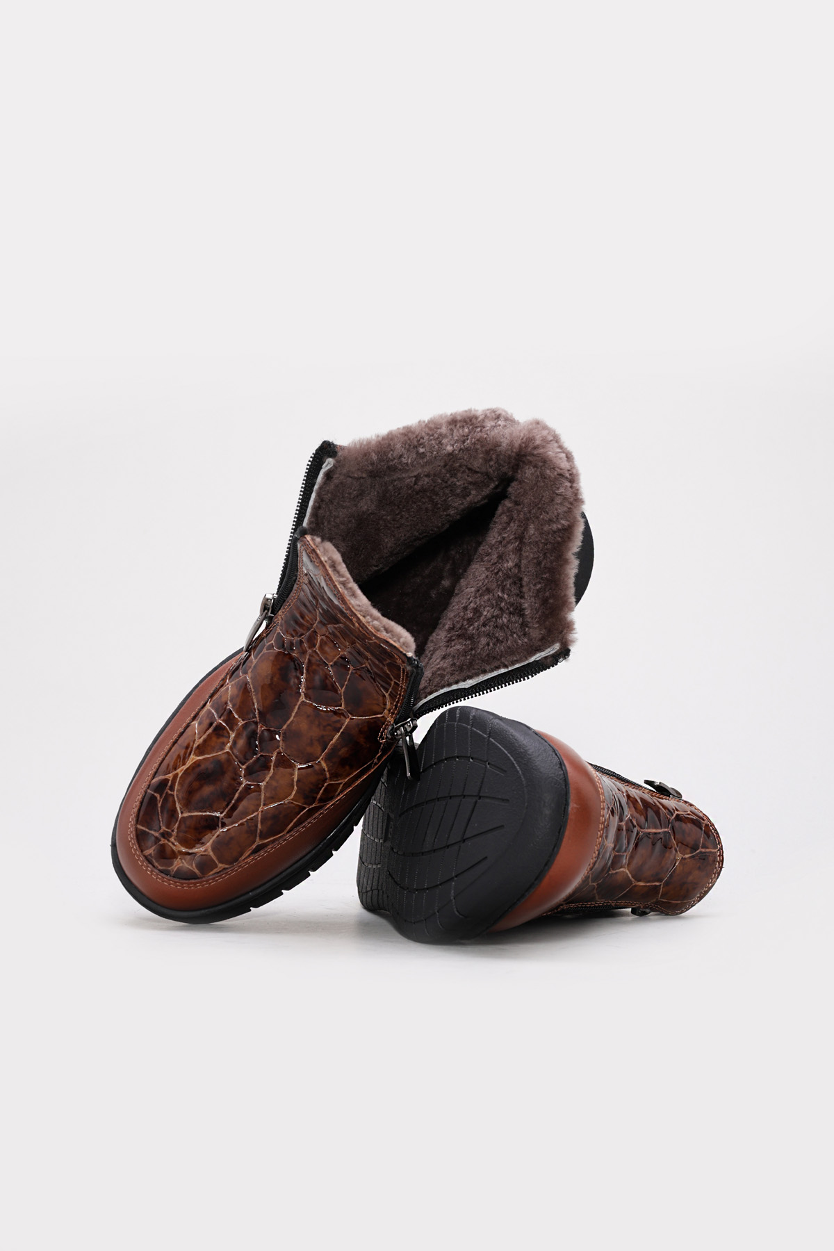 • Laviovil İçi Kürklü Dışı Hakiki Kroko Deri Taba Şık Kadın Klasik Bot AH08583112612707