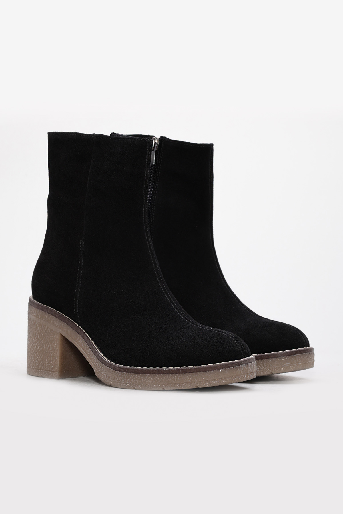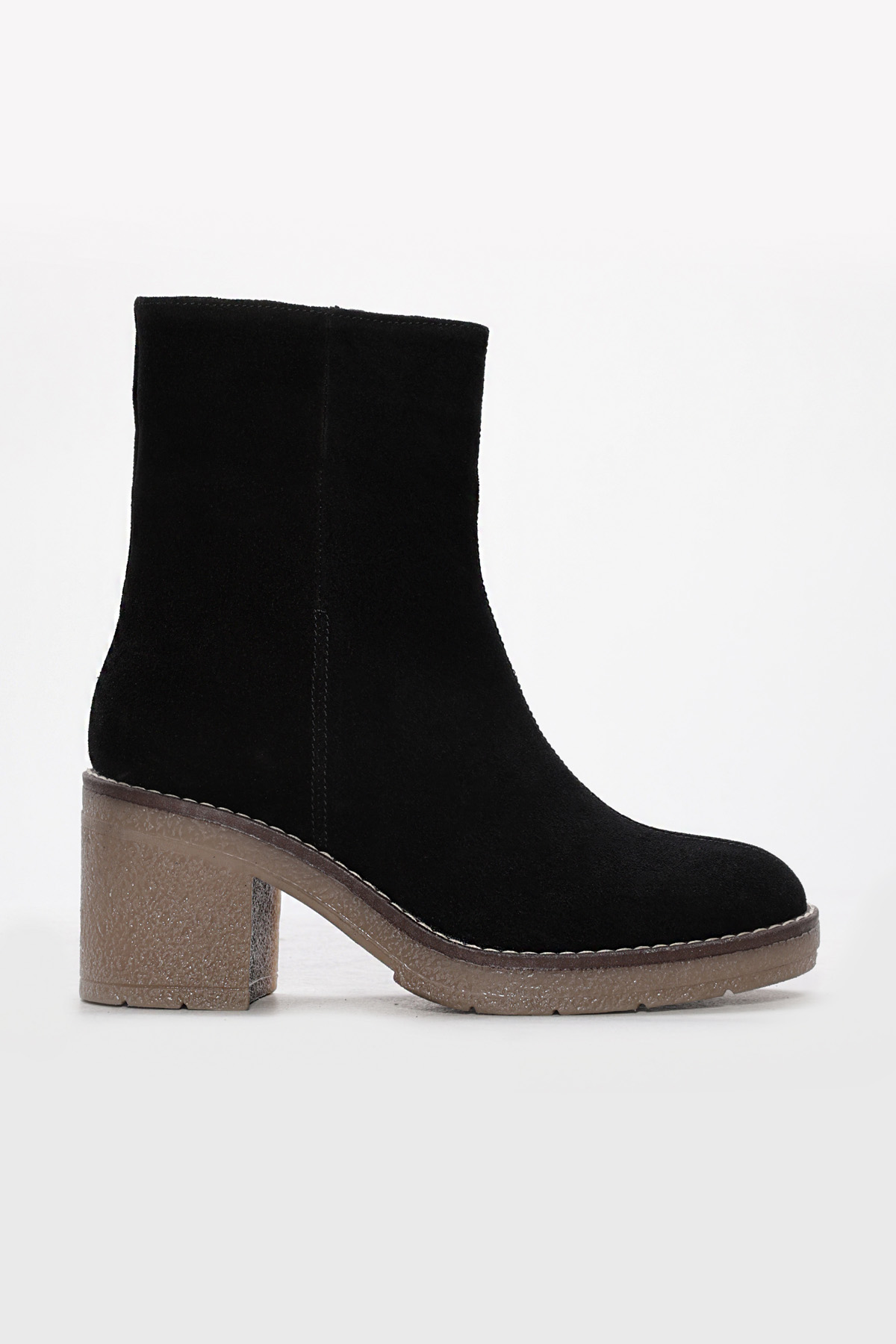 Laviovil İçi Kürklü Dışı Hakiki Süet Deri Siyah Kadın Kalın Topuklu Bot AH08657192612610