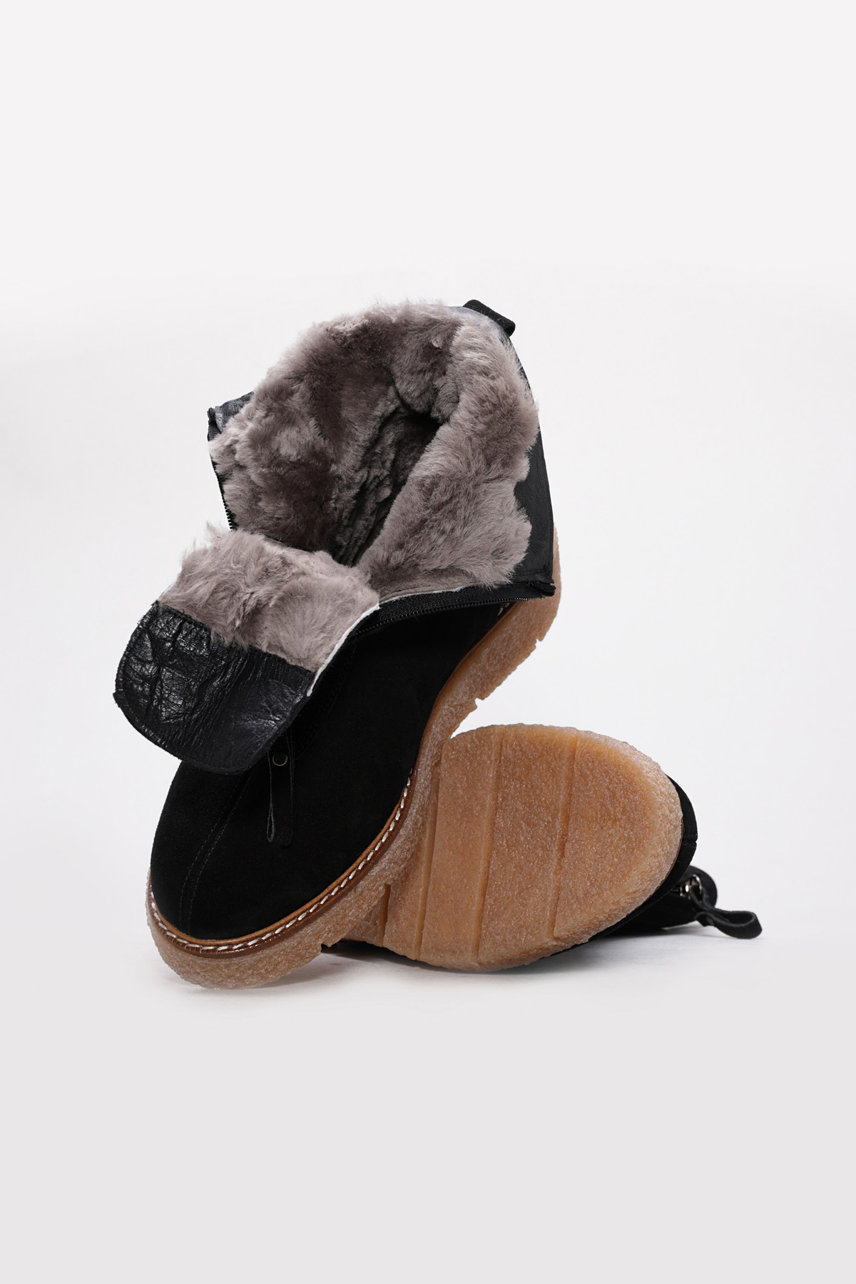 • Laviovil İçi Kürklü Dışı Hakiki Süet Deri Siyah Tarz Kadın Klasik Bot AH08657112612607