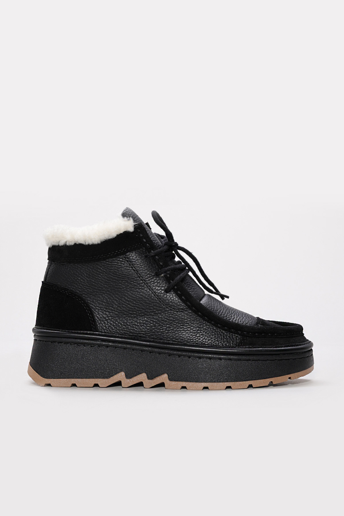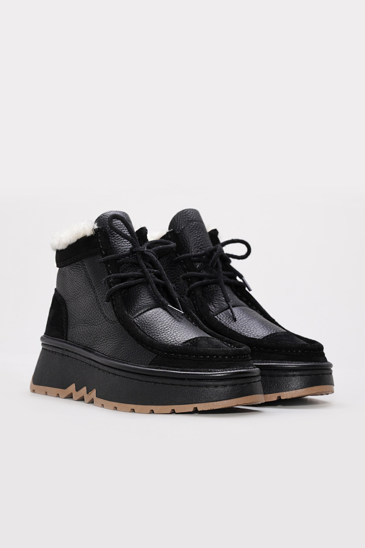 Laviovil Kaliteli Hakiki Süet Deri Siyah Bağcıklı Kadın Bot AH08409192613257